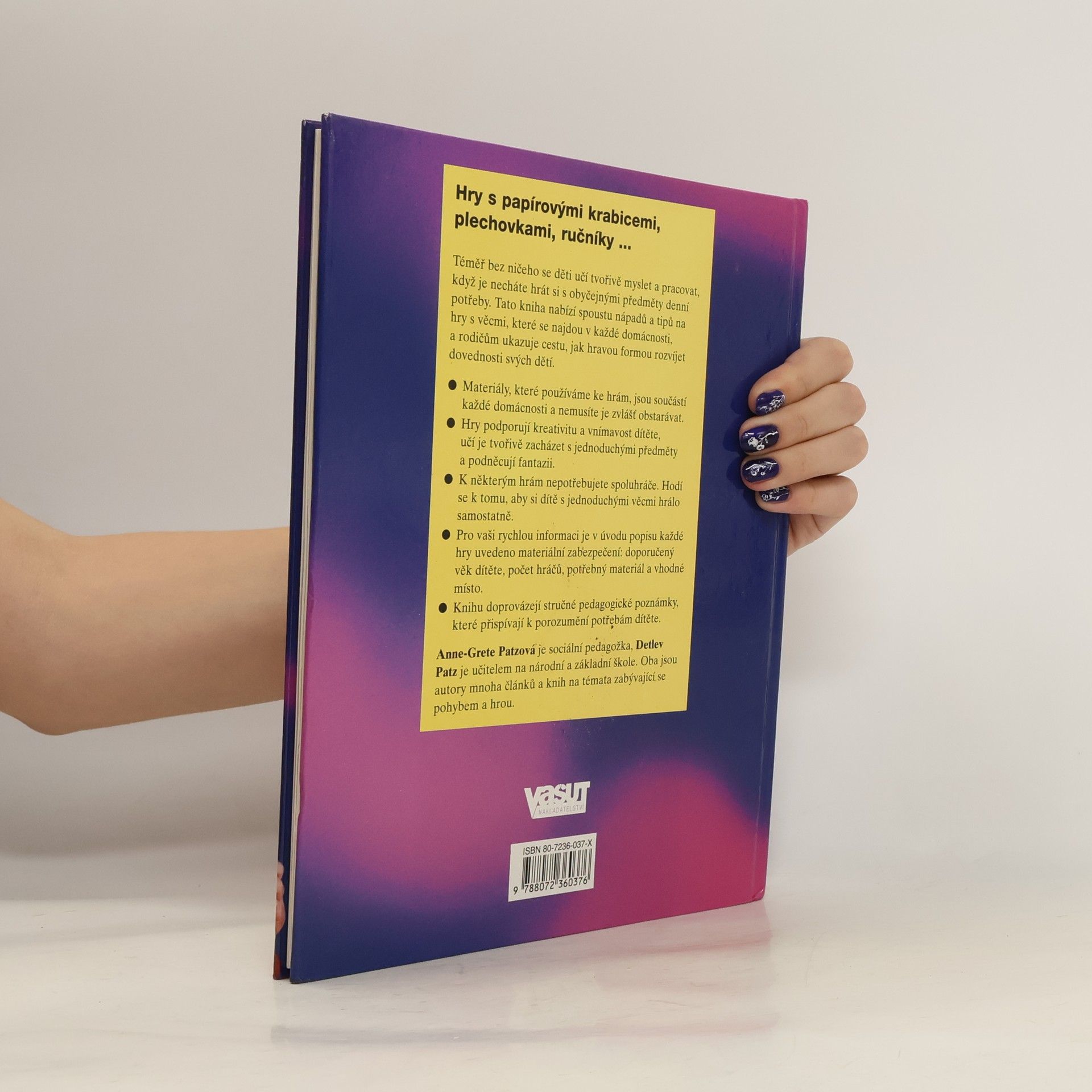 Hry s papírovými krabicemi, plechovkami, ručníky... Téměř bez ničeho se děti učí tvořivě myslet a pracovat, když je necháte hrát si s obyčejnými předměty denní potřeby. Tato kniha nabízí spoustu nápadů a tipů na hry s věcmi, které se najdou v každé domácnosti, a rodičům ukazuje cestu, jak hravou formou rozvíjet dovednosti svých dětí.