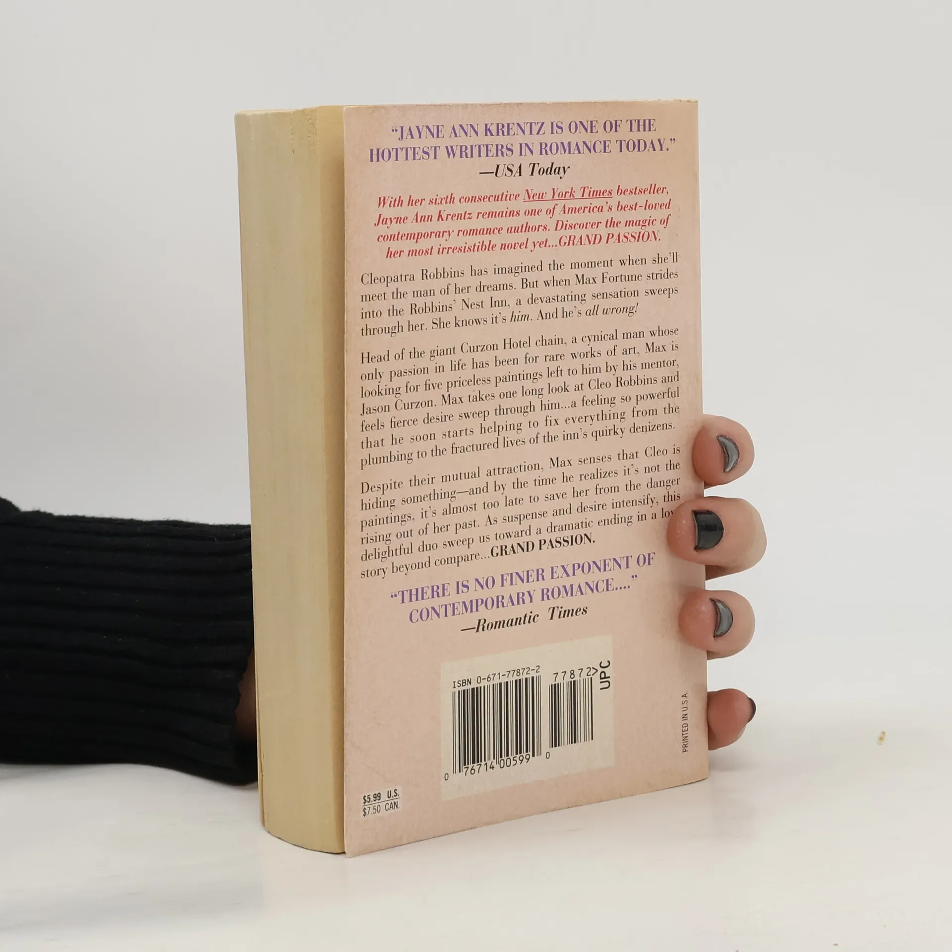 Cleopatra Robbins has imagined the moment when she'll meet the man of her dreams. But when Max Fortune strides into the Robbins' Nest Inn, a devastating sensation sweeps through her. She knows it's him. And he's all wrong! Head of the giant Curzon hotel chain, a cynical man whose only passion in life has been for rare works of art, Max is looking for five priceless paintings left to him by his mentor Jason Curzon. Max takes one long look at Cleo Robbins and feels fierce desire sweep through him...a feeling so powerful that he soon starts helping to fix everything from the plumbing to the fractured lives of the inn's quirky denizens. Despite their mutual attraction, Max senses that Cleo is hiding something -- and by the time he realizes it's not the paintings, it's almost too late to save her from the danger rising out of her past. As suspense and desire intensify, this delightful duo sweep us toward a dramatic ending in a love story beyond compare ...GRAND PASSION.