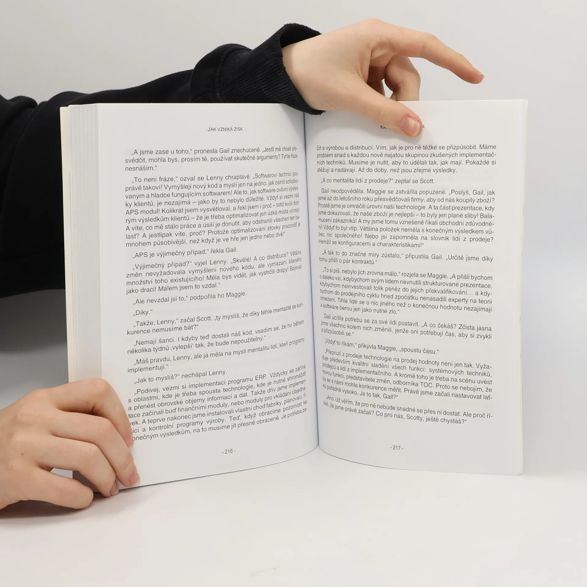 Světově uznávaný tvůrce předního manažerského přístupu dneška (teorie omezení) ukazuje ve svém novém románovém bestselleru na životě softwarové firmy, proč pro očekávané zlepšení výsledků nestačí zavedení nových technologií. Můžete sledovat, jak hrdinové knihy řeší vzniklé obtíže a krizové situace poté, co zjistili, že se jejich doposud prosperující firma dostala na okraj propasti. Nyní musejí vše dělat radikálně jinak. Vyjde firma díky tvořivému myšlení svých šéfů z tohoto kola konkurenčního boje větší, silnější a bohatší než kdykoliv předtím?