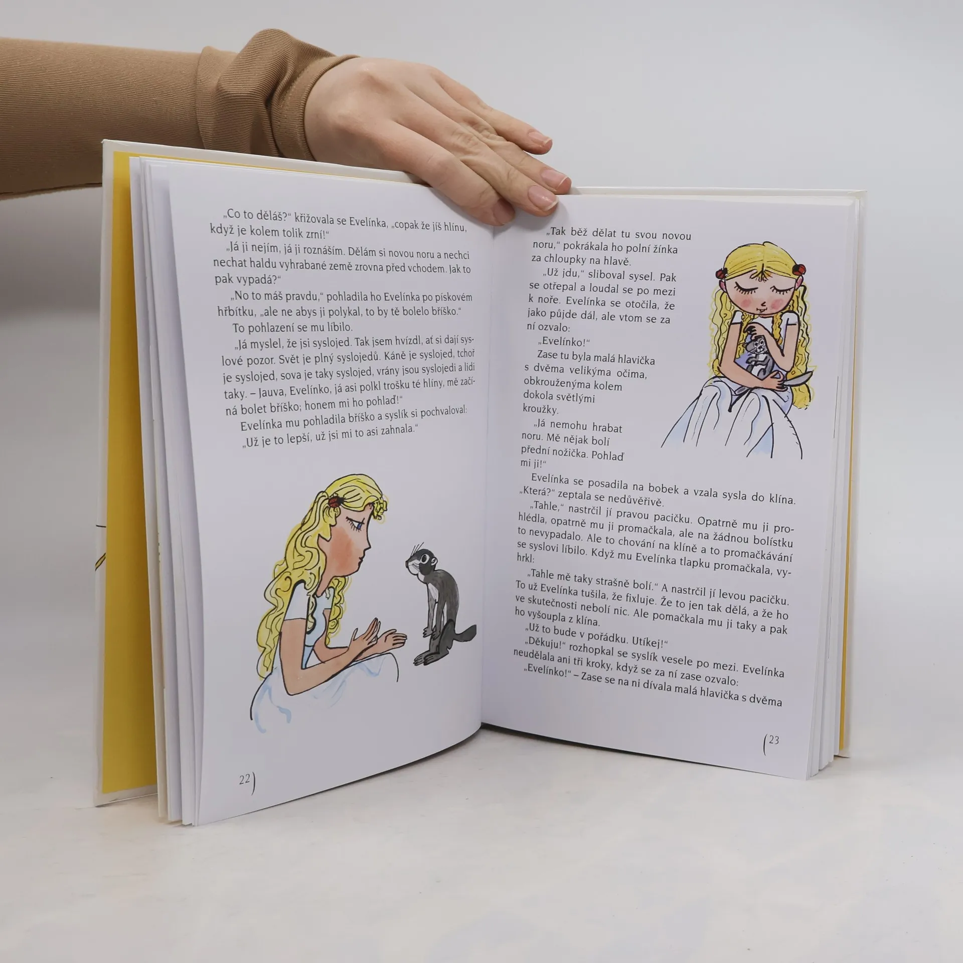 Polní žínka Evelínka autora Františka Nepila má vlasy jako len, zelenkavé oči v barvě přesličky, pas útlý jako vážka a celá je jako z pavučinky. Stará se o všechno, co roste a žije v polích, o rostliny i zvířátka, a lhostejní jí nejsou ani lidé...