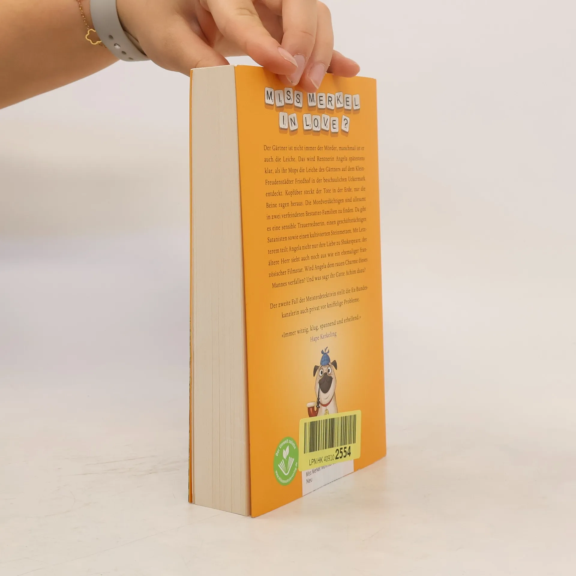 Der Gärtner ist nicht immer der Mörder, manchmal ist er auch die Leiche. Das wird Rentnerin Angela spätestens klar, als ihr Mops die Leiche des Gärtners auf dem Klein-Freudenstädter Friedhof in der beschaulichen Uckermark entdeckt. Kopfüber steckt der Tote in der Erde, nur die Beine ragen heraus. Die Mordverdächtigen sind allesamt in zwei verfeindeten Bestatter-Familien zu finden. Da gibt es einen dubiosen Geschäftsführer, eine spröde Buchhalterin, eine sensible Trauerrednerin, einen Satanisten sowie einen kultivierten Steinmetz. Mit Letzterem teilt Angela nicht nur ihre Liebe zu Shakespeare, der ältere Herr sieht auch noch aus wie ein ehemaliger französischer Filmstar. Wird Angela dem rauen Charme dieses Mannes verfallen? Und was sagt ihr Gatte Achim dazu? Der zweite Fall der Meisterdetektivin Miss Merkel stellt die Ex-Bundeskanzlerin auch privat vor kniffelige Probleme.