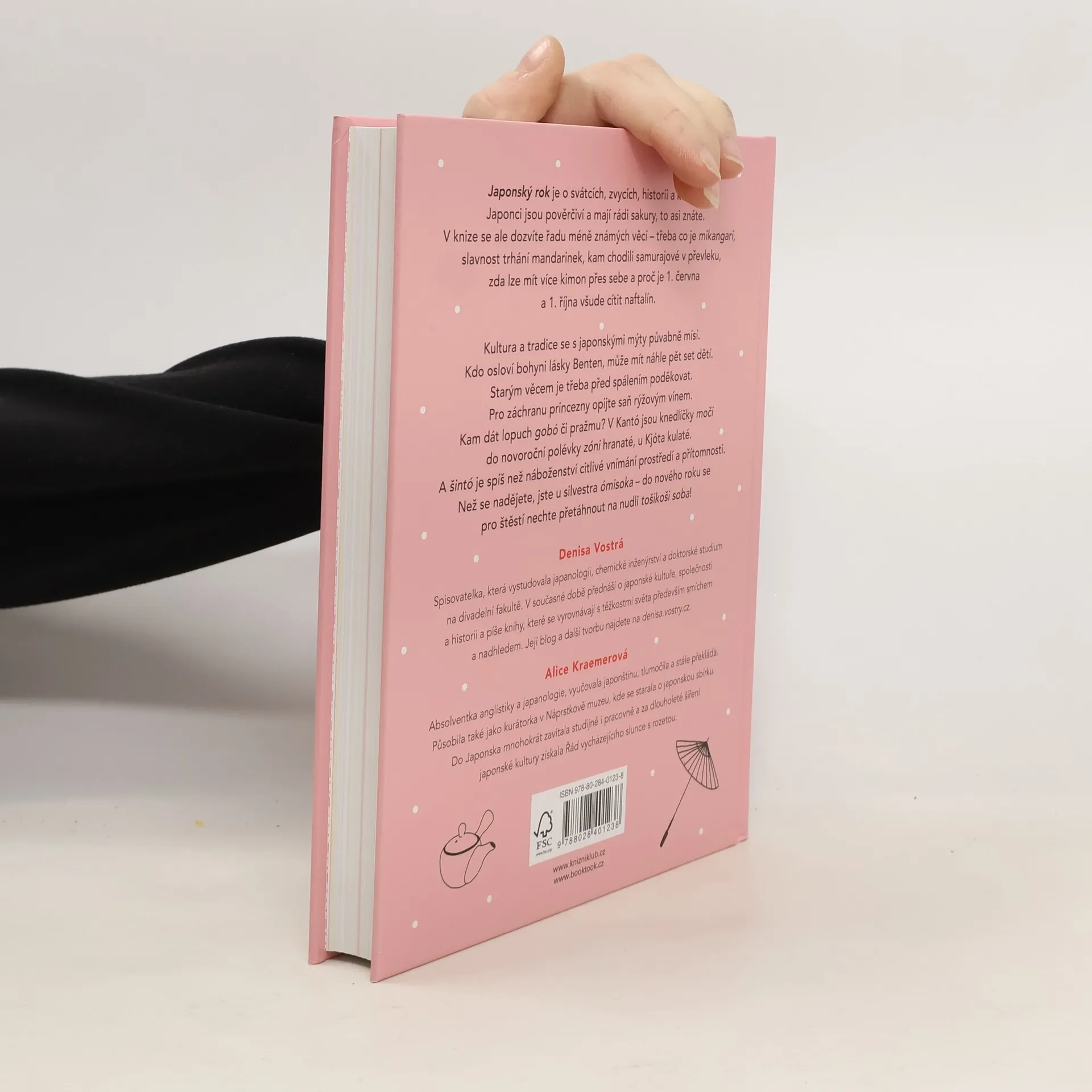 Japonský rok je o svátcích, zvycích, historii a kultuře. Japonci jsou pověrčiví a mají rádi sakury – to asi znáte. Ale co třeba mikangari, slavnost trhání mandarinek? Proč na ilustracích Příběhu prince Gendžiho chybí střechy? Kam chodili samurajové v převleku? Lze mít více kimon přes sebe? Proč je 1. června a 1. října všude cítit naftalín? Knihu otevřete kdekoli a začtete se. Kultura a tradice se s japonskými mýty a pověrami mísí půvabným způsobem. Kdo osloví bohyni lásky Benten, může mít náhle pět set dětí. Starým věcem je třeba před spálením poděkovat. Pro záchranu princezny opijte saň rýžovým vínem. Do čeho dát lopuch gobó a do čeho pražmu? Tu je recept na čáhan. V Kantó jsou knedlíčky moči do novoroční polévky zóni hranaté, u Kjóta kulaté. Nejkulatější bílé dango se hodí při cukimi, pozorování měsíce v úplňku. A šintó je spíš než náboženství citlivé vnímání prostředí a přítomnosti. Než se nadějete, jste s knihou u silvestra ómisoka – do nového roku se pro štěstí nechte přetáhnout na nudli tošikoši soba!