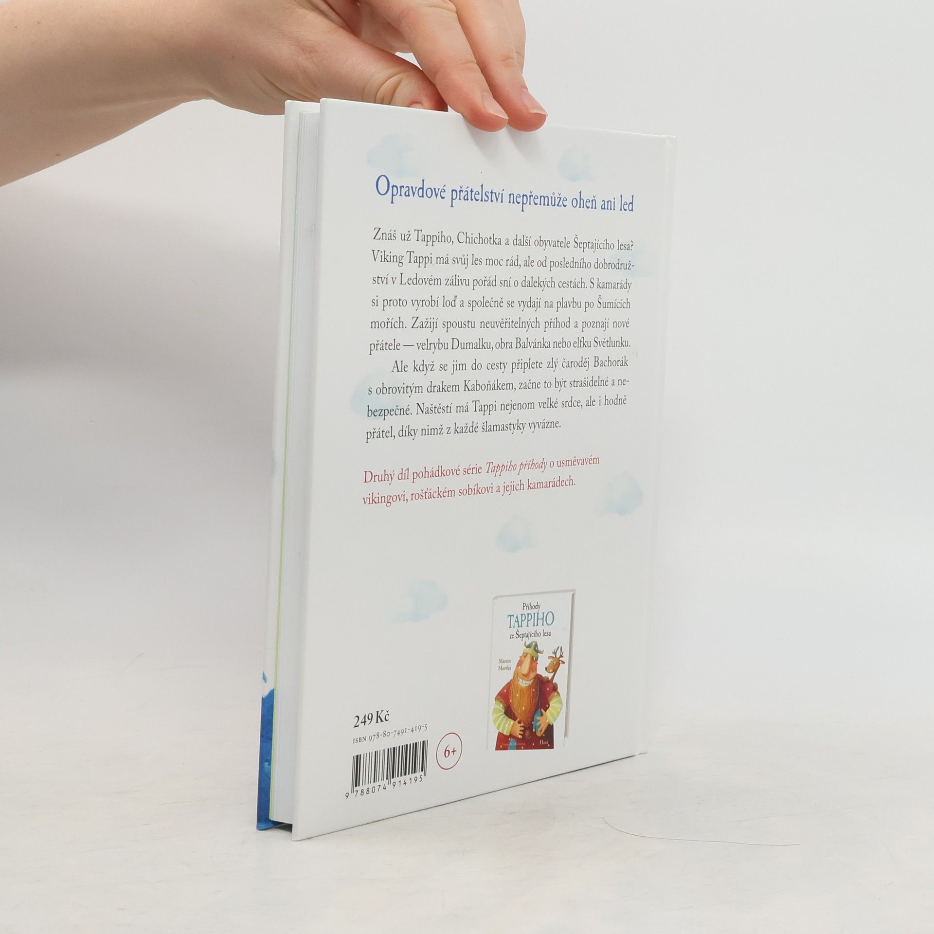 Druhý díl série o usměvavém vikingovi a jeho kamarádech. Jestlipak už znáš Tappiho, Chichotka a další obyvatele Šeptajícího lesa? Viking Tappi má tenhle les moc rád, ale od posledního dobrodružství v Ledovém zálivu pořád sní o dalekých cestách. S kamarády si proto vyrobí loď a společně se vydají na plavbu po Šumících mořích. Na moři se jim přihodí spousta neuvěřitelných příhod a také poznají nové přátele — například velrybu Dumalku, obra Balvánka anebo elfku Světlunku. Ale když se jim do cesty připlete zlý čaroděj Bachorák s obrovitým drakem Kaboňákem, začne to být strašidelné a nebezpečné. Naštěstí má Tappi nejenom velké srdce, ale také hodně kamarádů, díky kterým z každé šlamastyky vyvázne celý. Marcin Mortka vytvořil kouzelný svět plný zvířátek, zvláštních bytostí a zábavných situací. Postavy prožívají spoustu úžasných dobrodružství, která děti učí, co je v životě nejdůležitější. Dobrosrdečného vikinga Tappiho, který pomáhá druhým, pečuje o své přátele a chrání je před každým, kdo by jim chtěl ublížit, si prostě zamiluje celá rodina. Pro čtenáře od šesti let.