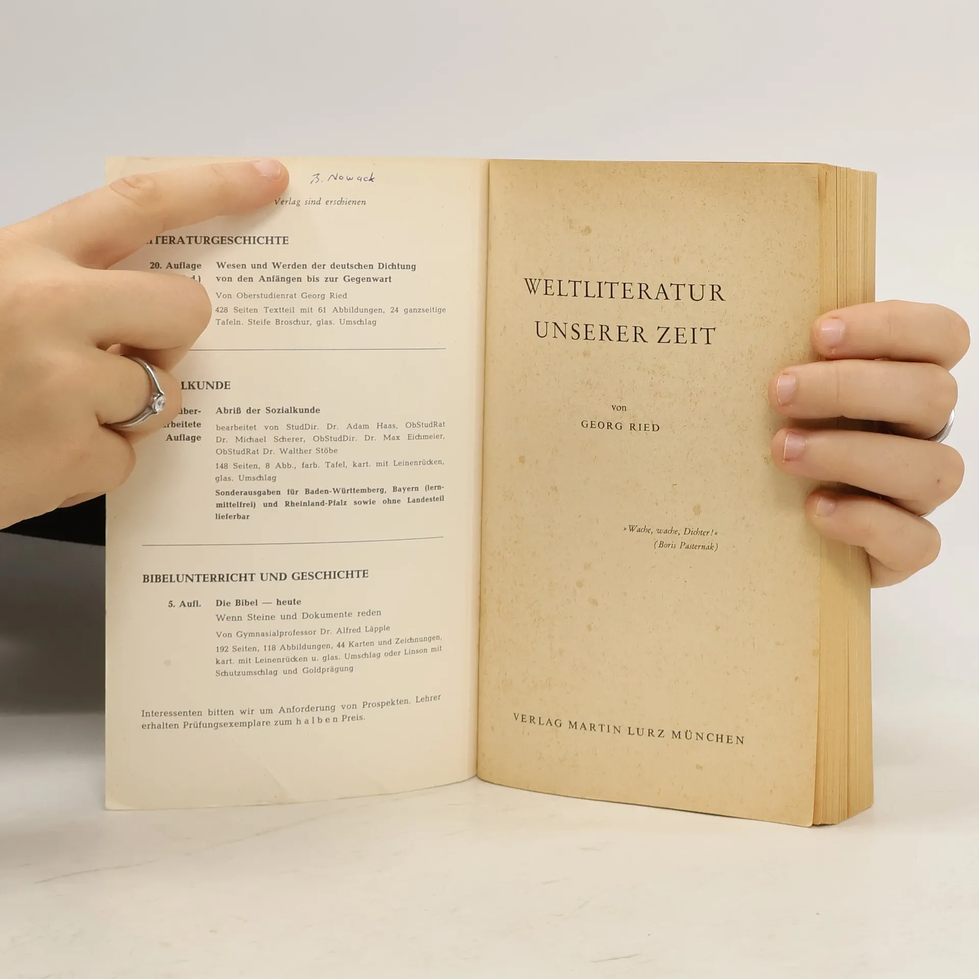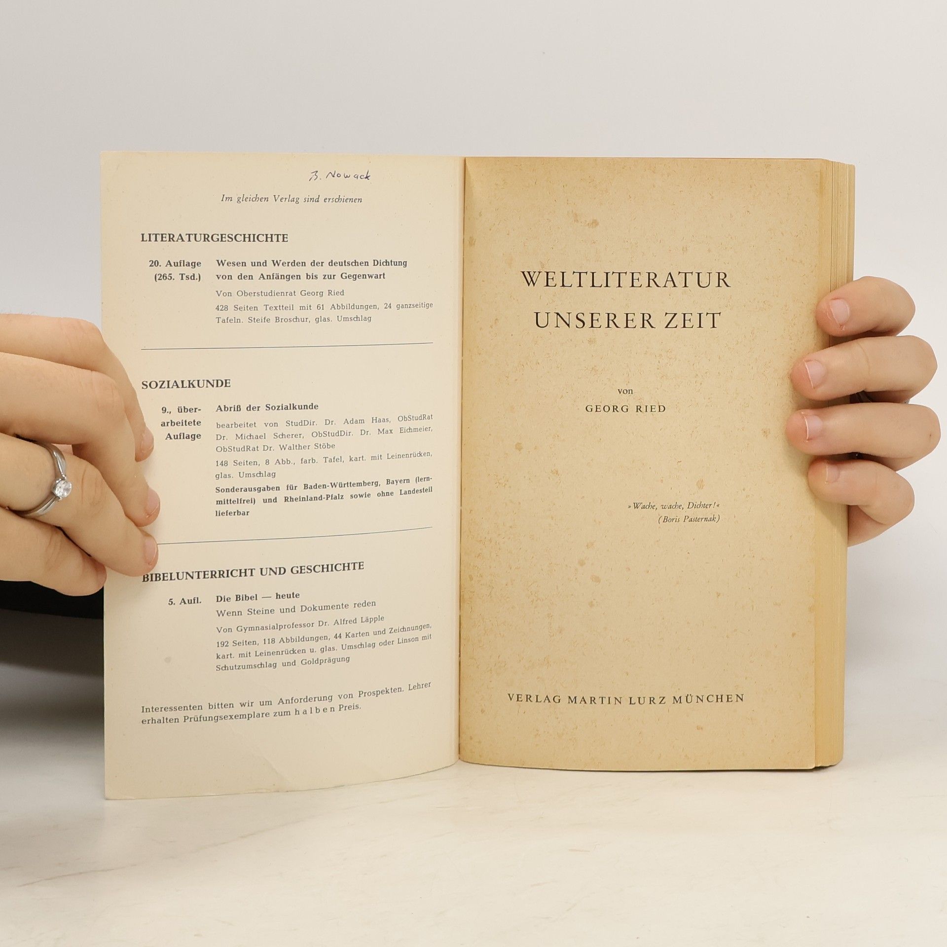 Weltliteratur unserer zeit, Georg Ried