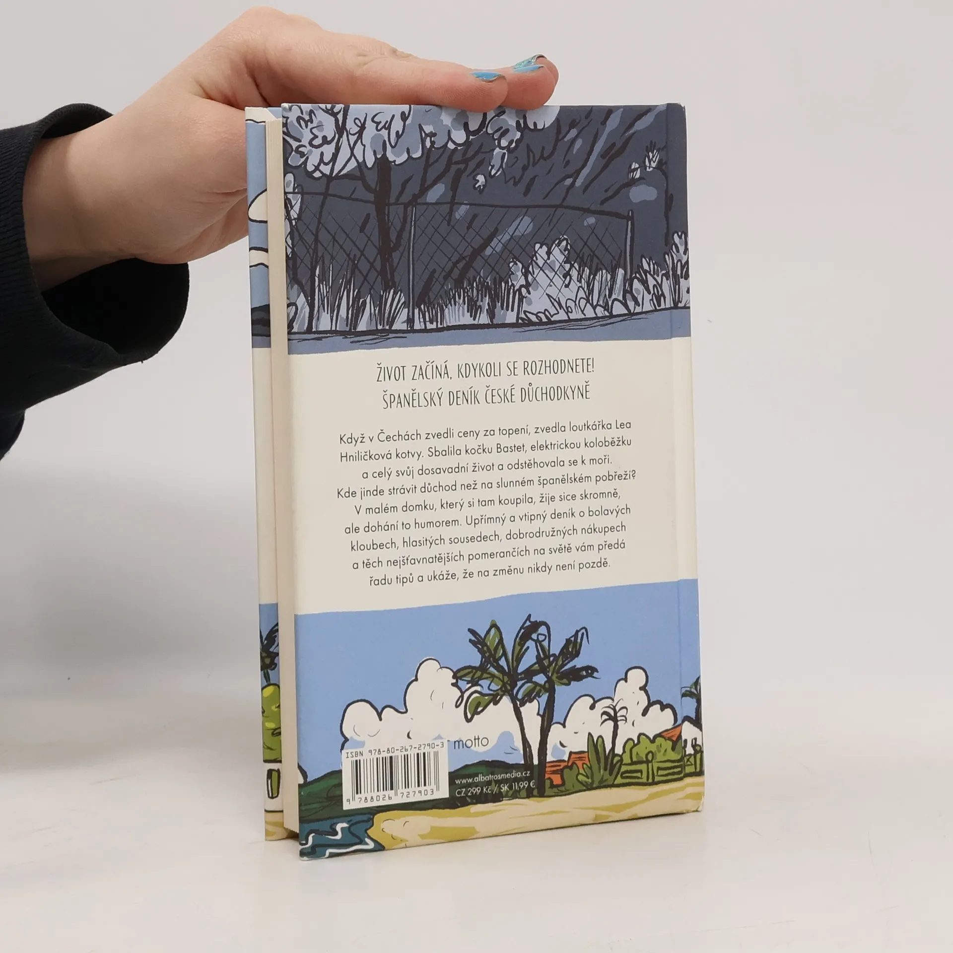 Když v Čechách zvedli ceny za topení, zvedla loutkářka Lea Hniličková kotvy. Sbalila kočku Bastet, elektrickou koloběžku a celý svůj dosavadní život a odstěhovala se k moři. Kde jinde strávit důchod než na slunném španělském pobřeží? V malém domku, který si tam koupila, žije sice skromně, ale dohání to humorem. Upřímný a vtipný deník o bolavých kloubech, hlasitých sousedech, dobrodružných nákupech a těch nejšťavnatějších pomerančích na světě vám předá řadu tipů a ukáže, že na změnu nikdy není pozdě.