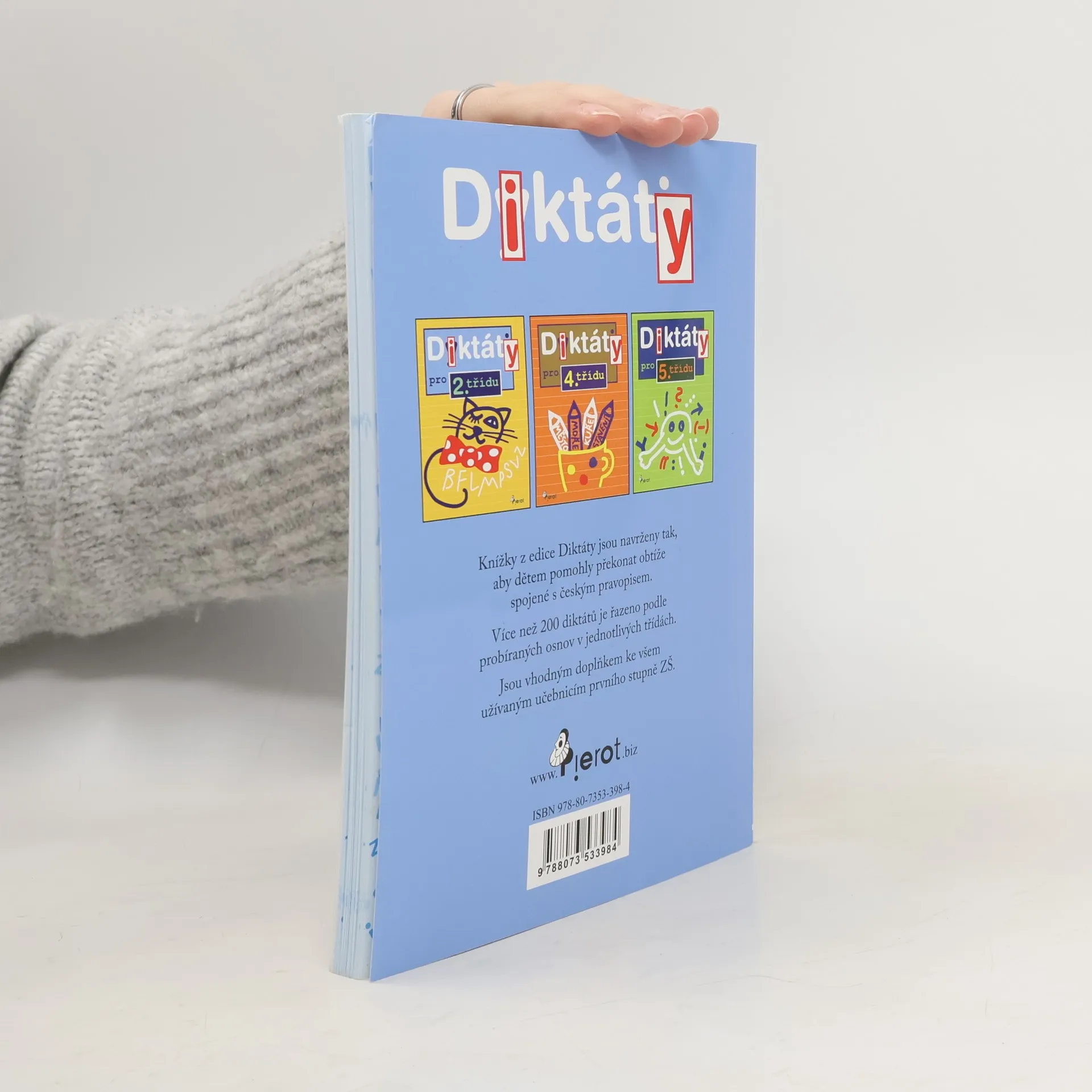 Cvičebnice diktátů určená pro 3. třídu, která je doplňkem běžných učebnic českého jazyka. Na každé straně jsou za diktáty připojena i doplňovací cvičení, ke kterým je na konci cvičebnice uveden klíč. Obtížnost diktátů odpovídá osnovám 3. tříd. (www.mlp.cz)