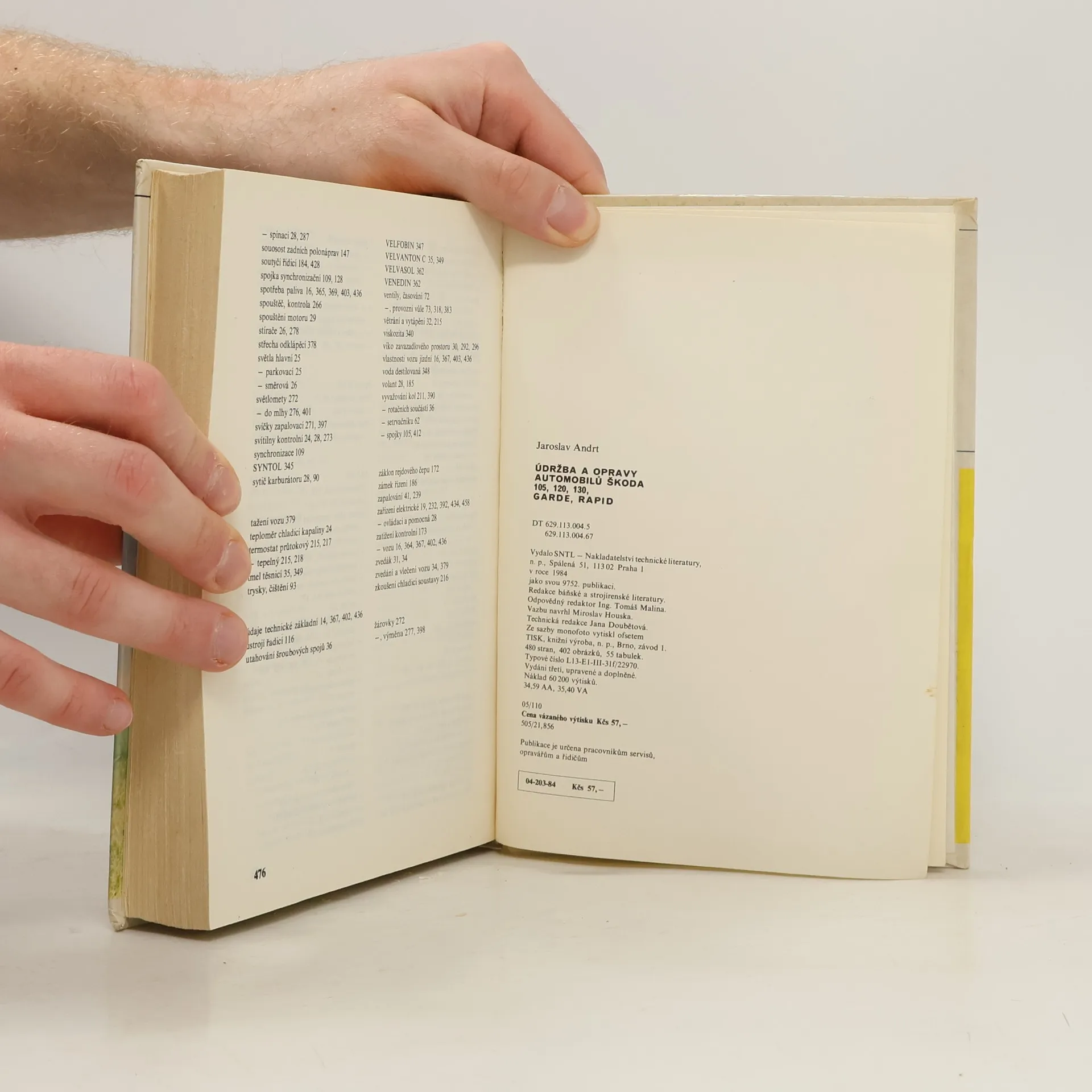 Publikace popisuje podrobný postup všech údržbářských a opravářských prací na osobních automobilech Škoda 105 S, 105 L, 105 GL, 105 SP, 120, 120 L, 120 LE, 120 GL, 120 LS, 120 LX, 120 GLS, 130 L, GARDE, RAPID, RAPID 130 v rozsahu běžných a středních oprav. Při popisu jednotlivých prací je uvedena demontáž, oprava, montáž a seřízení vč. nářadí a přípravků.