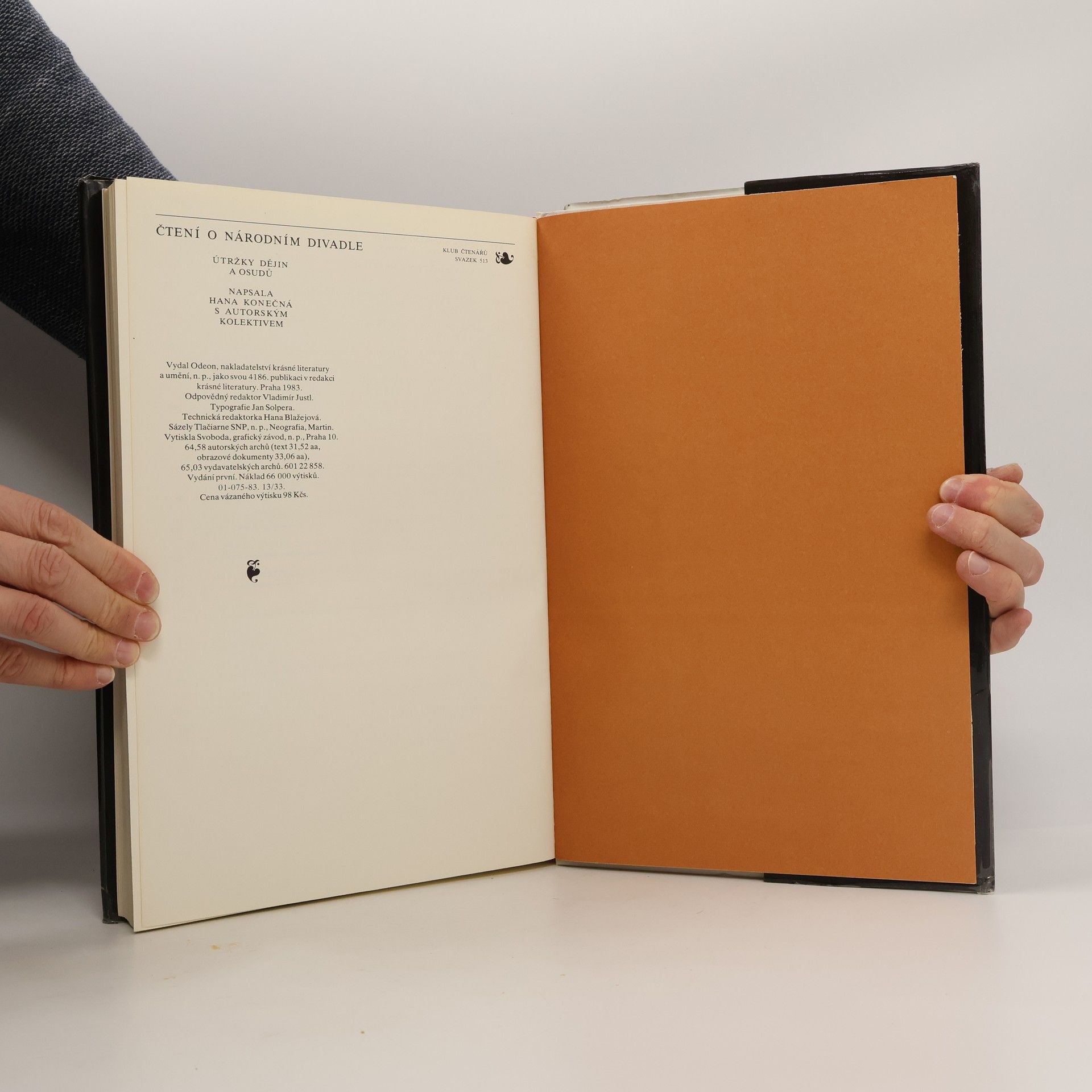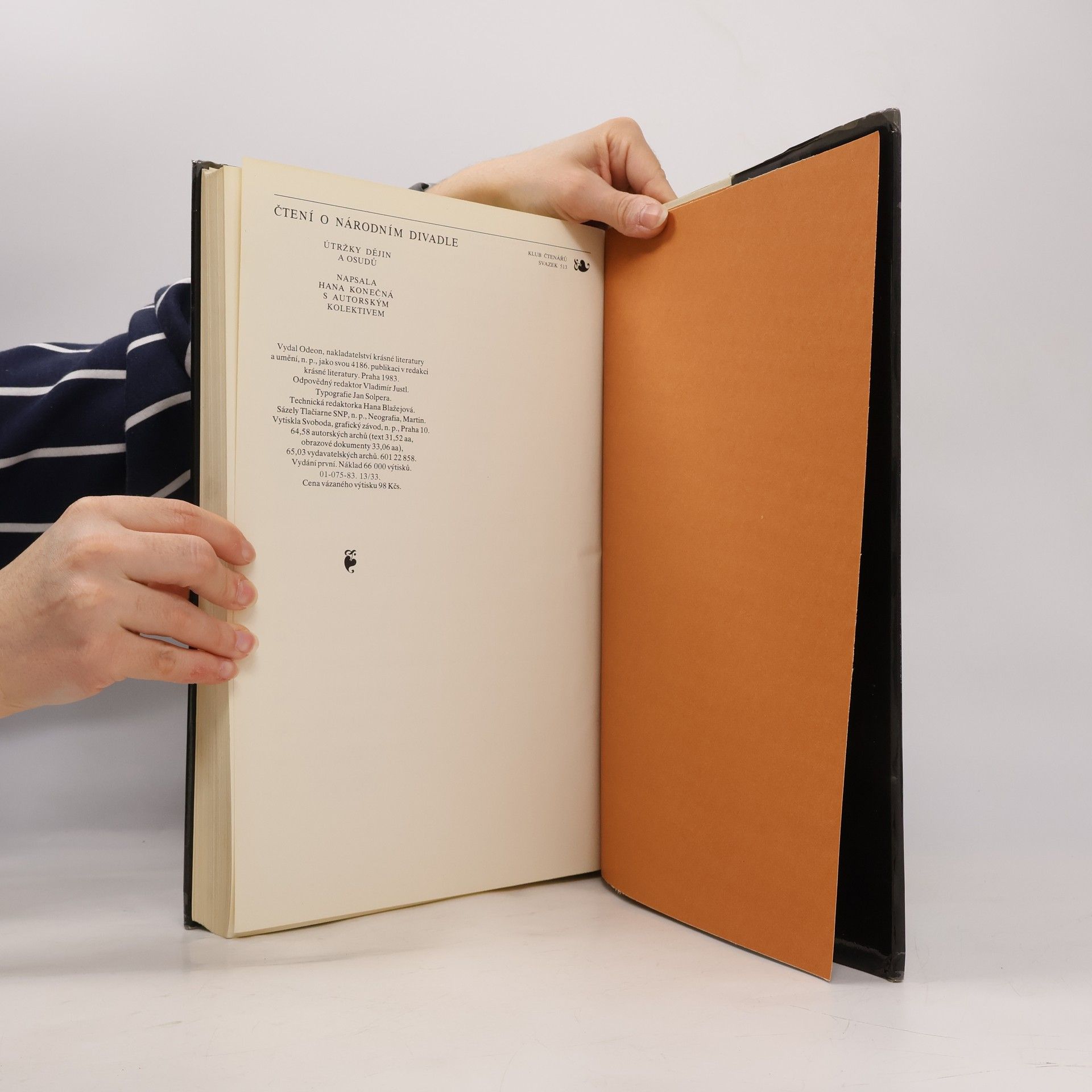 Útržky dějin a osudů. Hana Konečná [i.e. Jan Kopecký] s autorským kolektivem. Skutečným autorem je Jan Kopecký, který v době normalizace nesměl publikovat, své jméno mu pro tuto publikaci propůjčila Hana Konečná (viz. Databáze Národní knihovny ČR a Informační systém abART - full verze)Spoluatoři: Ljuba Klosová (kapitola 11), Jaromír Paclt, Věra Ptáčková (kapitola 27), Ivana Vadlejchová, ilustrace, portréty, faksimile - Jaroslav Krejčí, kalendárium - Jindřich Černý. Obsahuje bibliografii, bibliografické odkazy a rejstřík Formát 340 x 230 mm