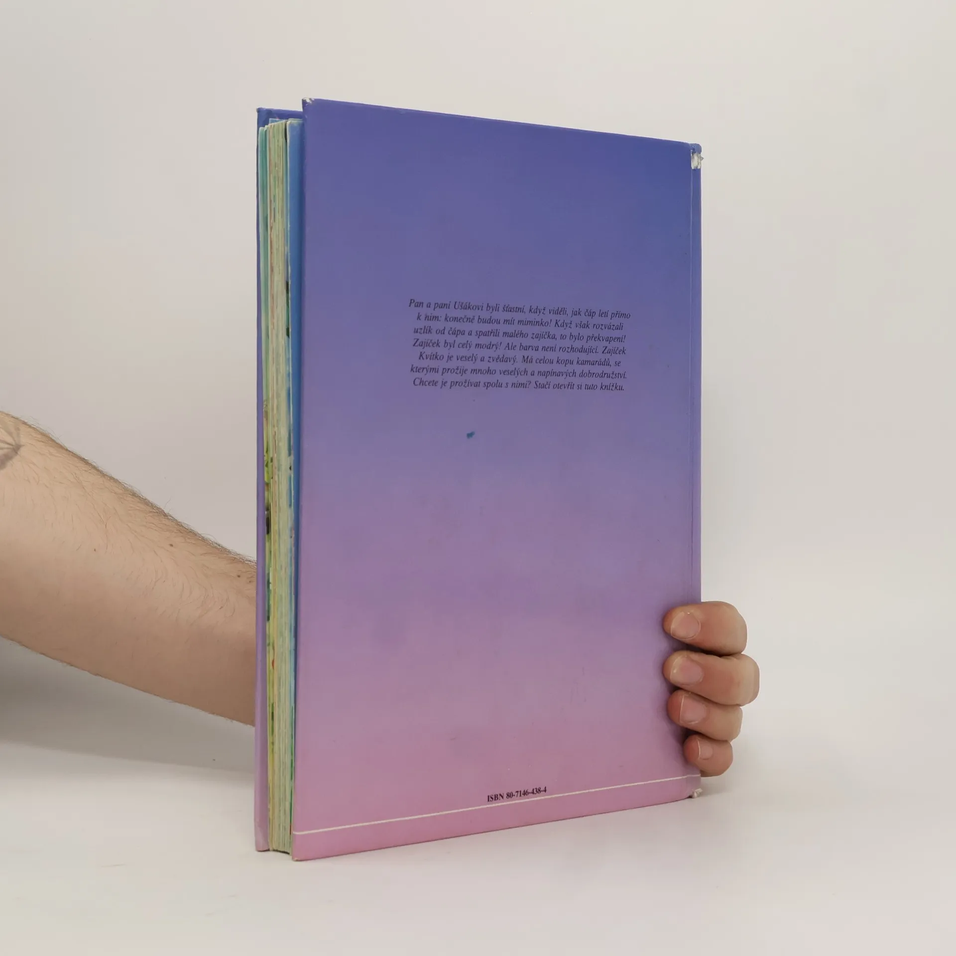 Do rodiny pana a paní Ušákových přiletěl čáp a donesl v uzlíku modrého zajíčka. Dostal jméno Kvítko. A jen co se rozkoukal, našel si přátele a zažívá různá dobrodružství.
