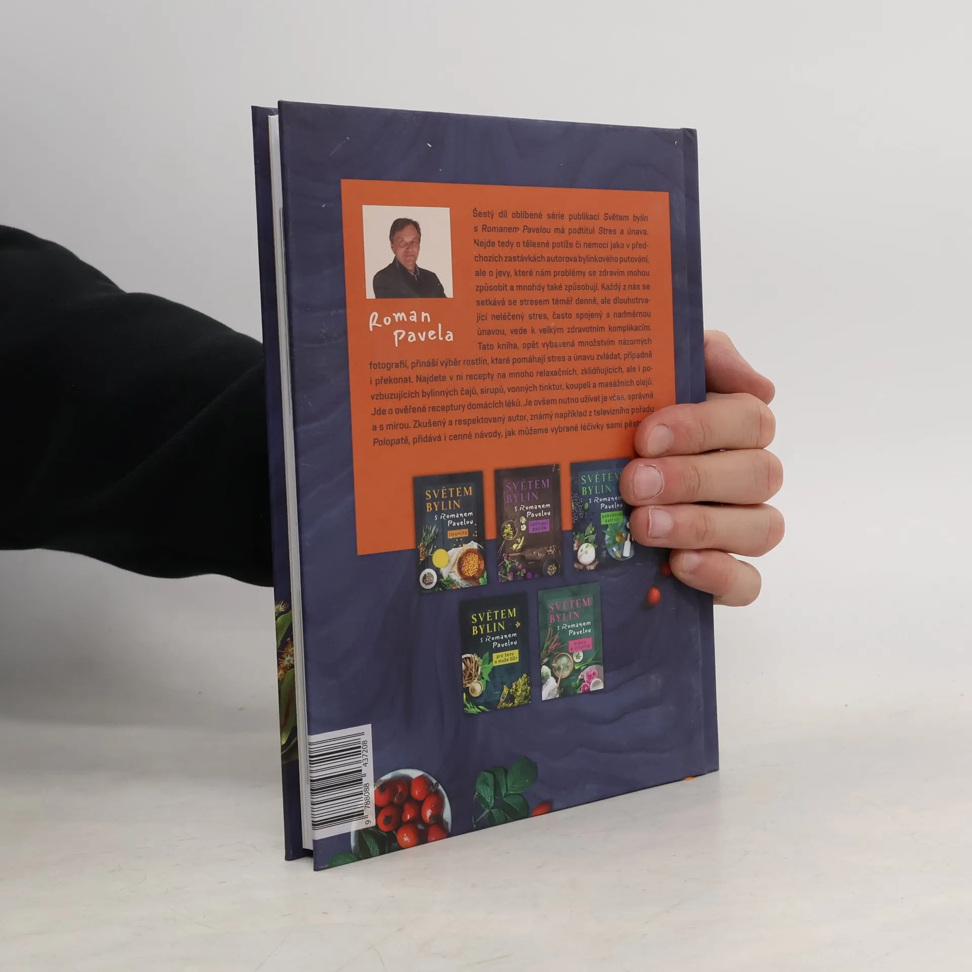 Šestý díl oblíbené série publikací Světem bylin s Romanem Pavelou má podtitul Stres a únava. Nejde tedy o tělesné potíže či nemoci jako v předchozích zastávkách autorova bylinkového putování, ale o jevy, které nám problémy se zdravím mohou způsobit a mnohdy také způsobují. Každý z nás se setkává se stresem téměř denně, ale dlouhotrvající neléčený stres, často spojený s nadměrnou únavou, vede k velkým zdravotním komplikacím. Tato kniha, opět vybavená množstvím názorných fotografií, přináší výběr rostlin, které pomáhají stres a únavu zvládat, případně i překonat. Najdete v ní recepty na mnoho relaxačních, zklidňujících, ale i povzbuzujících bylinných čajů, sirupů, vonných tinktur, koupelí a masážních olejů. Jde o ověřené receptury domácích léků. Je ovšem nutno užívat je včas, správně a s mírou. Zkušený a respektovaný autor, známý například z televizního pořadu Polopatě, přidává i cenné návody, jak můžeme vybrané léčivky sami pěstovat.