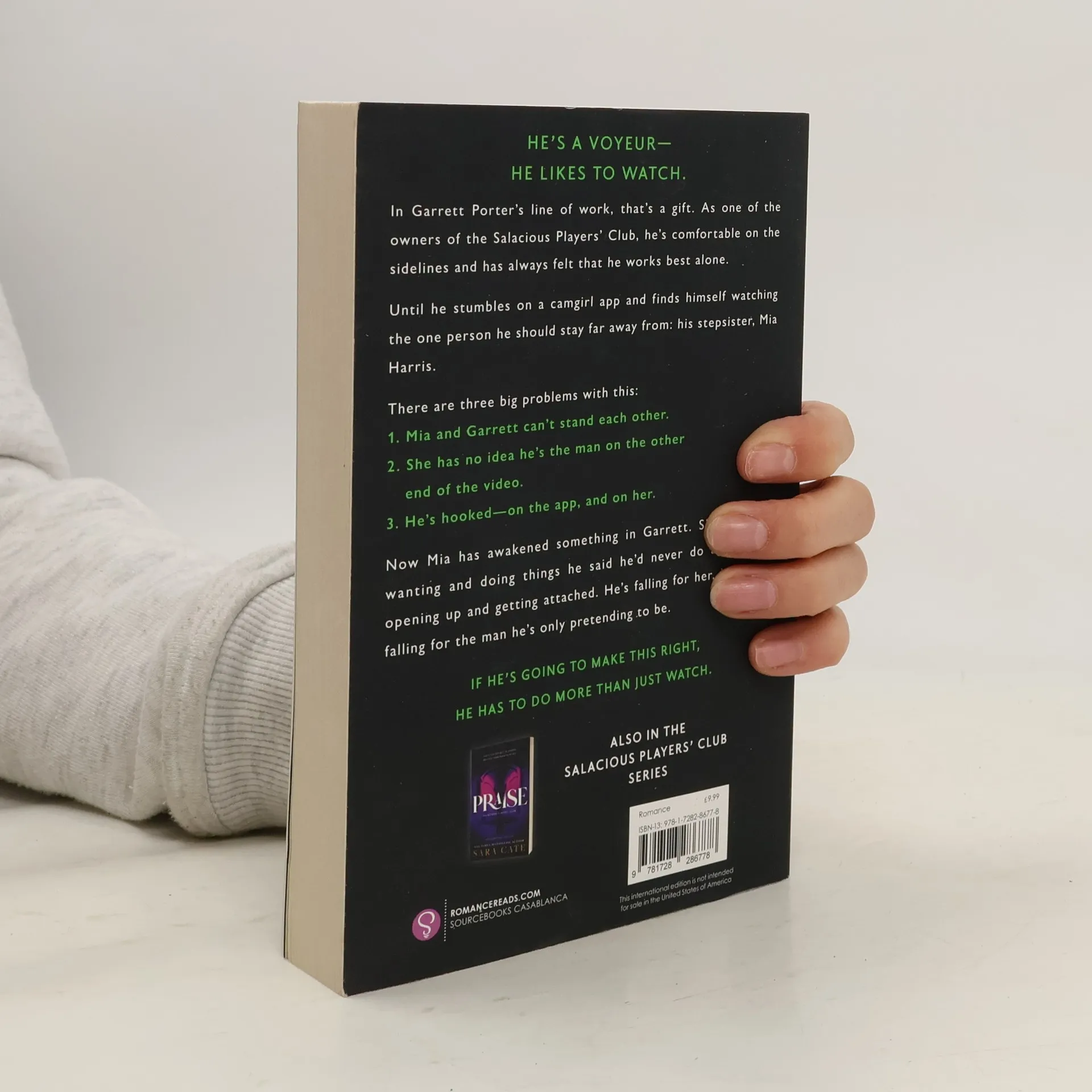 He's a voyeur-it means he likes to watch. In Garrett Porter's line of work, that's a gift. Asone of the owners of the Salacious Players' Club, he's comfortable on the sidelines and has always felt that he works best alone. Until he stumbles on a cam girl app and finds himself watching the one person he should stay far away from: his step-sister, Mia Harris. There are three big problems with this. One, Mia and Garrett can't stand each other. Two, she has no idea he's the man on the other end of the video. And three, he's hooked-on the app, and on her. Now Mia has awakened something in Garrett. She has him wanting and doing things he said he'd never do again, like opening up and getting attached. He's falling for her, but she's falling for the man he's only pretending to be. If he's going to make this right, he has to do more than just watch.