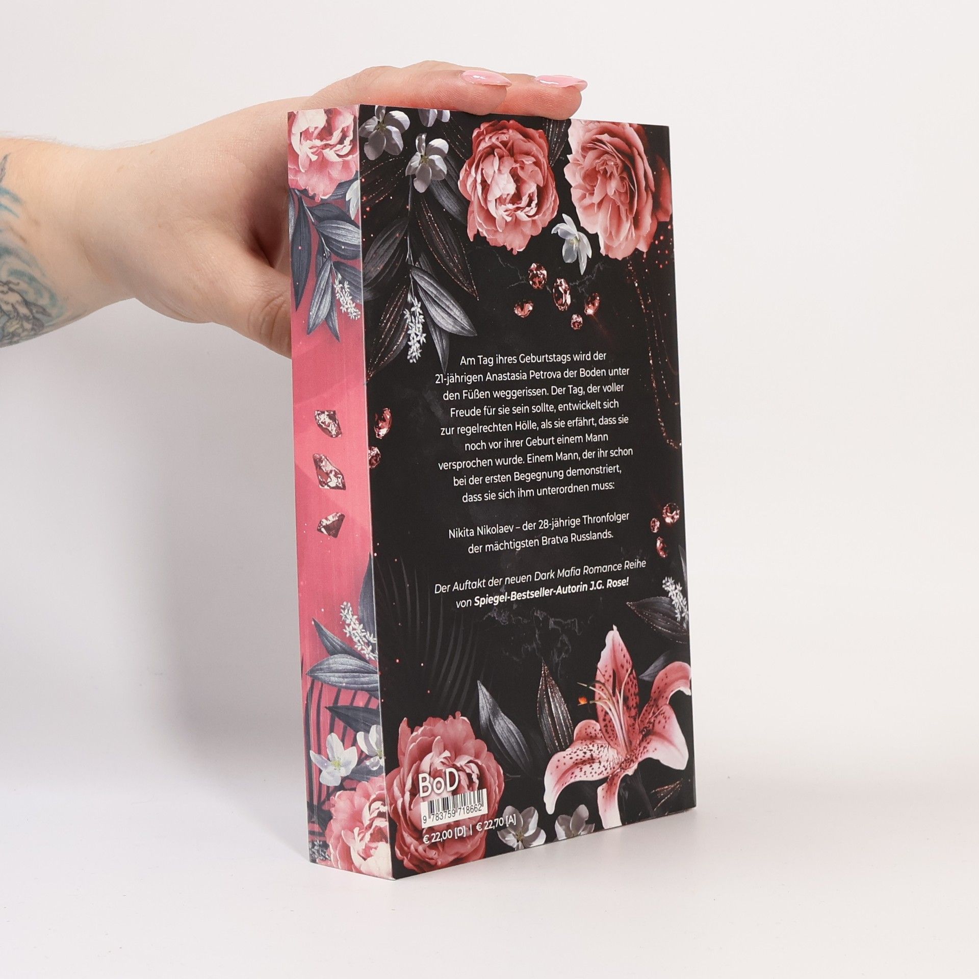 Auftakt der neuen Dark Mafia Romance Reihe von Spiegel-Bestseller-Autorin J.G. Rose! Am Tag ihres Geburtstags wird der 21-jährigen Anastasia Petrova der Boden unter den Füßen weggerissen. Der Tag, der voller Freude für sie sein sollte, entwickelt sich zur regelrechten Hölle, als sie erfährt, dass sie noch vor ihrer Geburt einem Mann versprochen wurde. Einem Mann, der ihr schon bei der ersten Begegnung demonstriert, dass sie sich ihm unterordnen muss: Nikita Nikolaev – der 28- jährige Thronfolger der mächtigsten Bratva Russlands. Dieses Buch zeigt toxische Beziehungsmuster und behandelt Themen, die triggernd sein könnten. Es ist nichts für schwache Nerven.