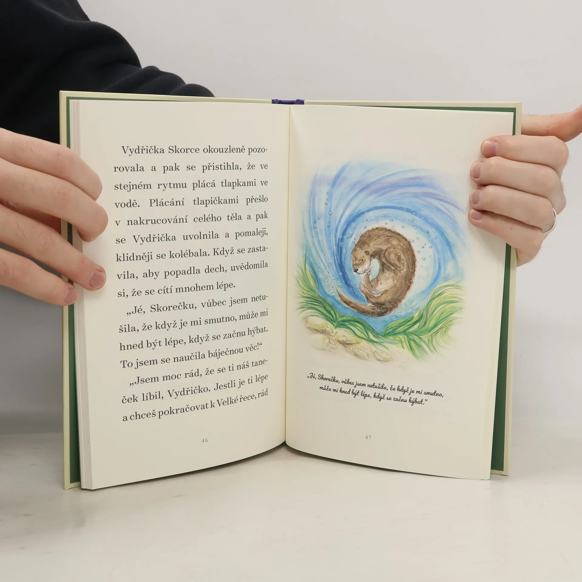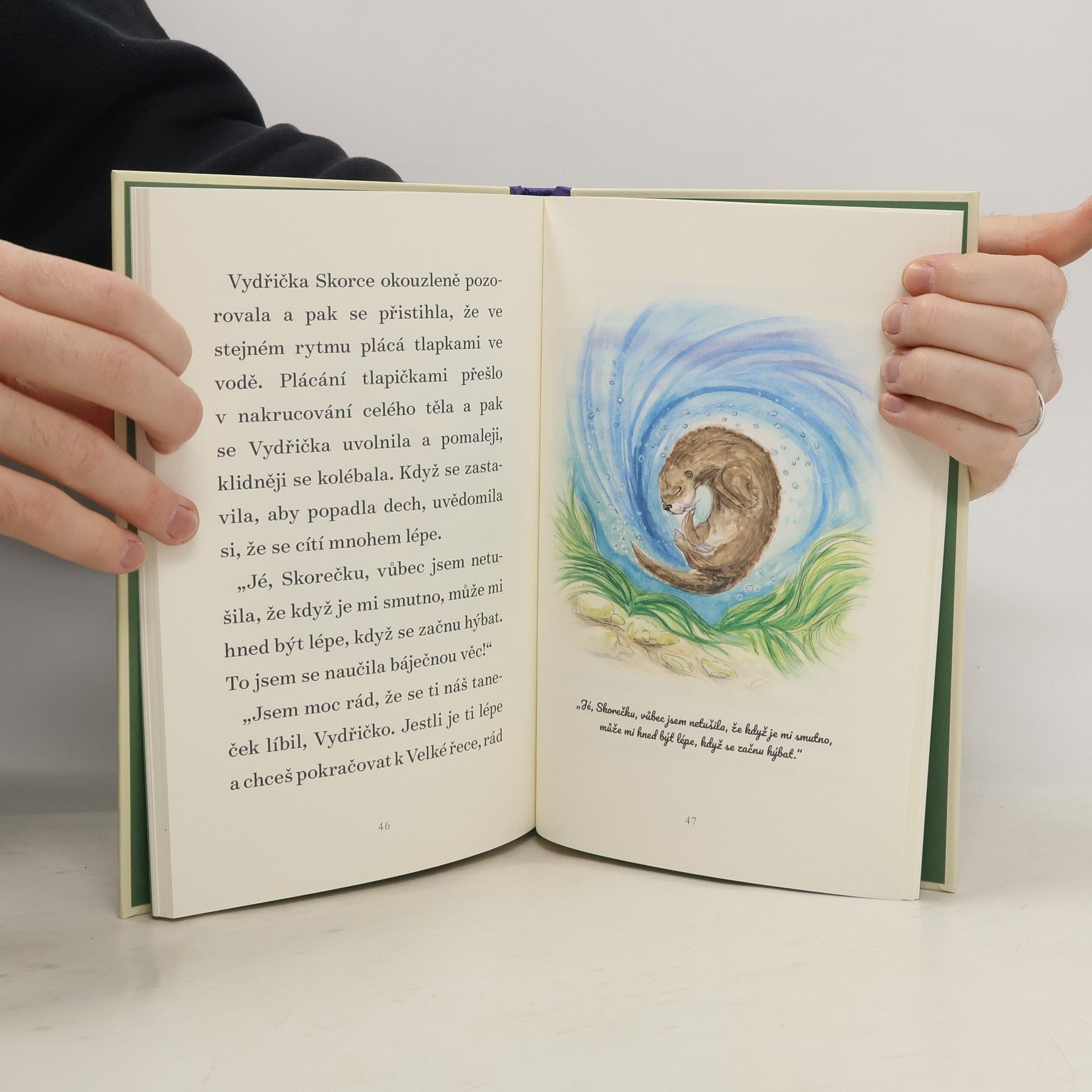 Malá Vydřička se bojí naučit plavat sama. Pozoruje své sourozence, jak si hrají a ladně kloužou ve vodě, a hrozně moc si přeje se k nim přidat. Naštěstí má Vydřička u řeky spoustu kamarádů, od Načechraného káčátka a pana Ledňáčka až po Ropušáka krátkonohého, kteří se s ní podělí o vyprávění, jak se sami naučili plavat, létat a skákat. Pomůžou jejich rady a povzbuzování Vydřičce k tomu, aby se nevzdávala? Povzbuzující příběh Vydřičky je citlivě vyprávěný a krásně ilustrovaný.