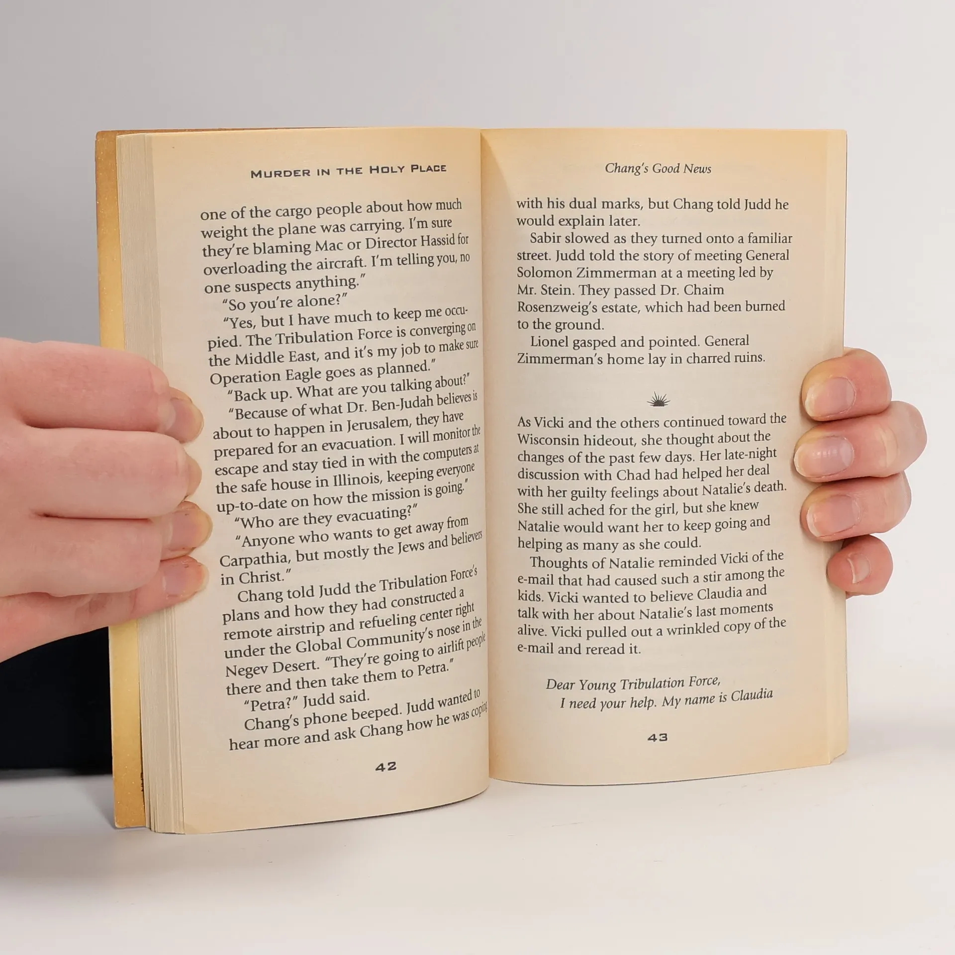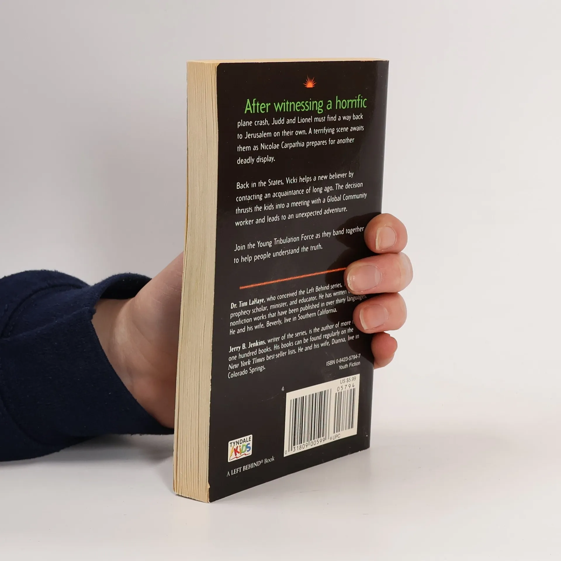 After witnessing a horrific plane crash, Judd and Lionel must find a way back to Jerusalem on their own. A terrifying scene awaits them as Nicolae Carpathia prepares for another deadly display.Back in the States, Vicki helps a new believer by contacting an acquaintance of long ago. The decision thrusts the kids into a meeting with a Global Community worker and leads to an unexpected adventure.Join the Young Tribulation Force as they band together to help people understand the truth.