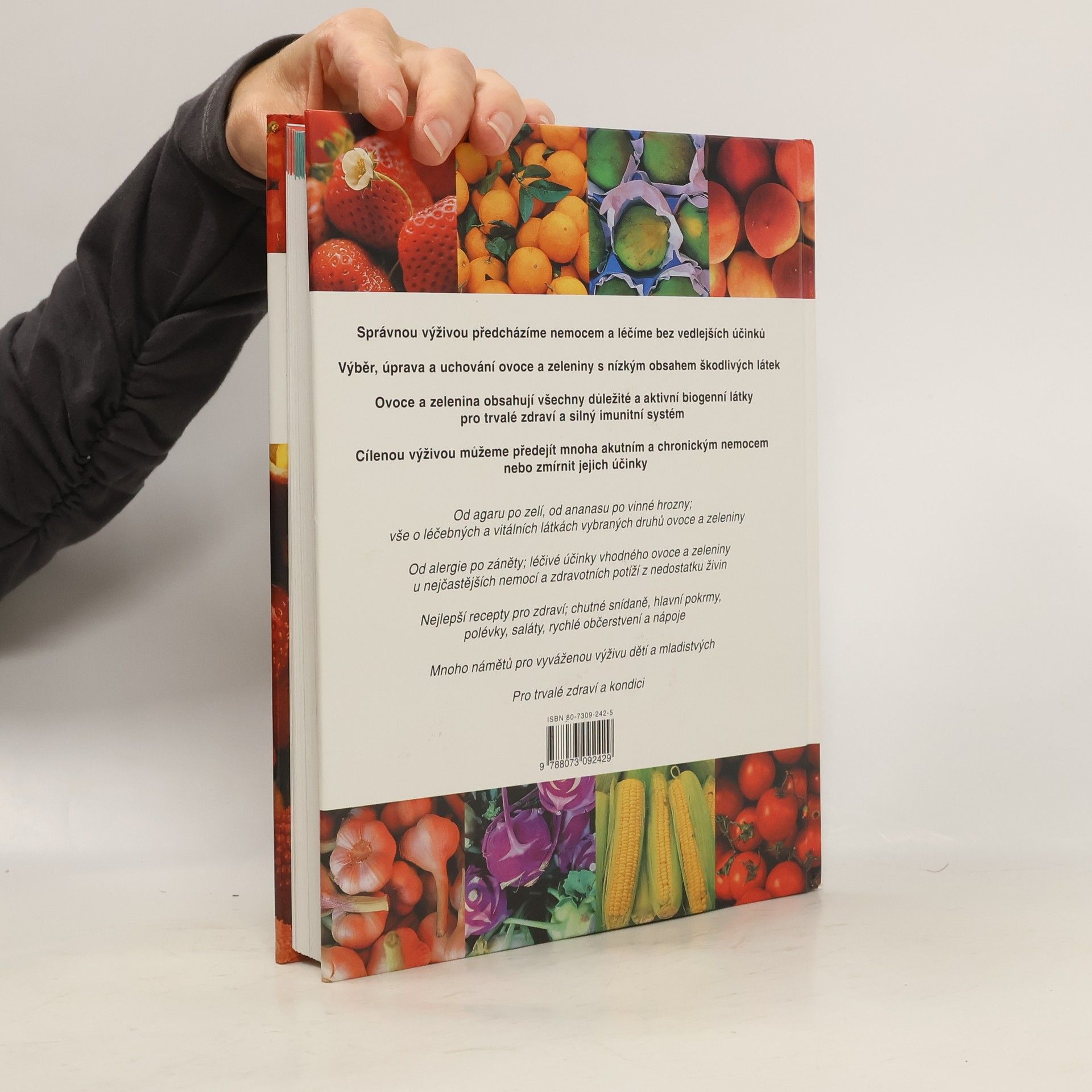 Stále ještě věříte, že léky můžete získat jen v lékárně? Pak vám uniklo, co v posledních letech s pomocí nejmodernější techniky zjistili biochemici- ovoce a zelenina obsahují mnohé léčivé látky, které v nejrůznějším složení poskytují pomoc téměř proti každé nemoci. Rostliny v mnoho miliónů let trvajícím procesu vyvinuly účinné látky aby samy přežily, a ty teď pomáhají člověku, jenž rostliny konzumuje.Tento poznatek ovšem vůbec není takový, jak by se zdálo. Člověk je přece přírodou vybaven k tomu, aby se živil především rostlinami a teprve potom masem.Na rozdíl od některých zvířat není schopen vytvářet životně důležitý vitamín C ve vlastním těle- je odkázán na jeho příjem ve stravě.Člověku totiž dodávají některé vitaminy, minerální látky a další životně důležité živiny pouze ovoce a zelenina.
