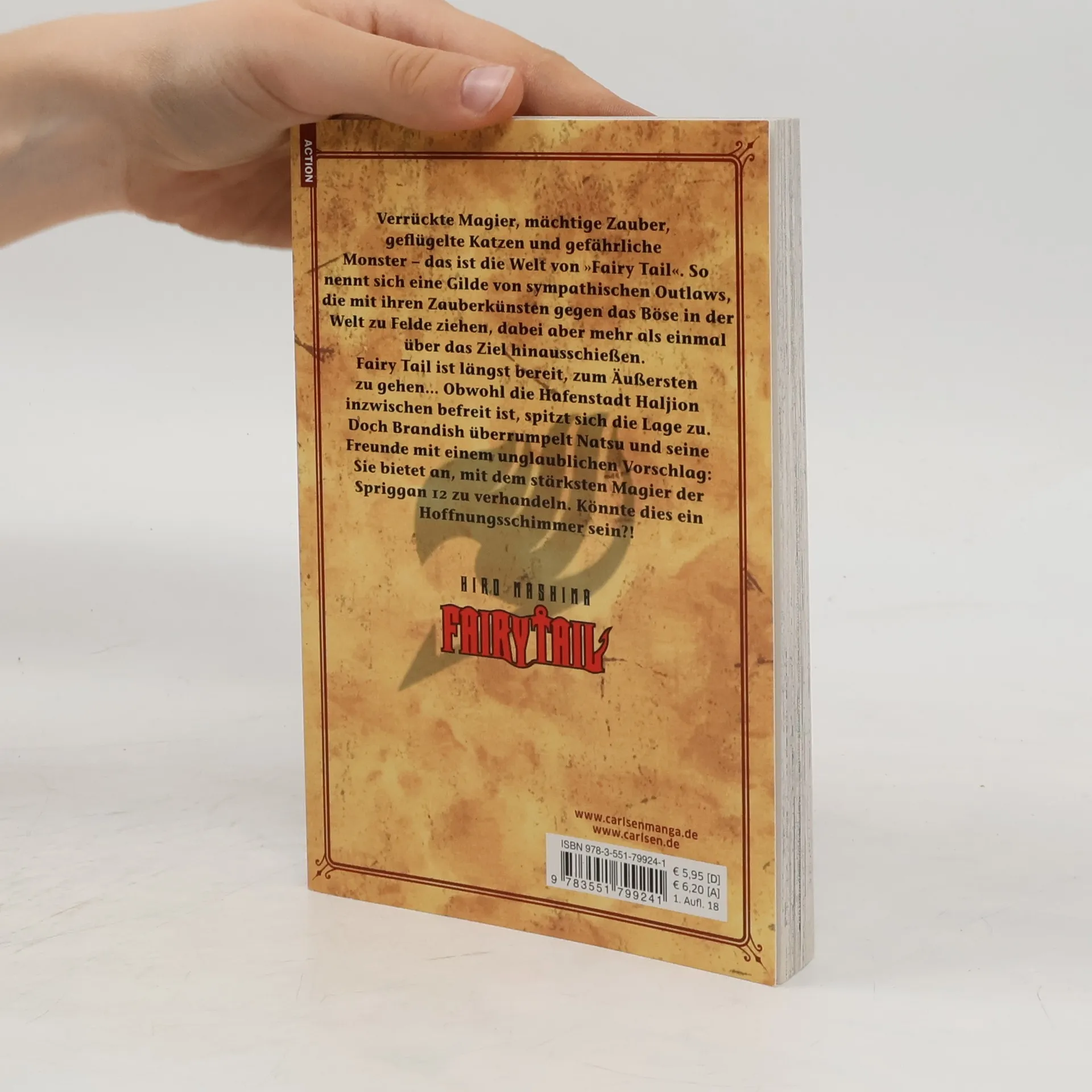 FAIRY TAIL ist der Mega-Erfolgsmanga aus Japan, in dem die Magier rund um Natsu und Co. beweisen, dass Freundschaft und Familie unbesiegbar sind. Fairy Tail ist längst bereit, zum Äußersten zu gehen… Obwohl die Hafenstadt Haljion inzwischen befreit ist, spitzt sich die Lage zu. Doch Brandish überrumpelt Natsu und seine Freunde mit einem unglaublichen Vorschlag: Sie bietet an, mit dem stärksten Magier der Spriggan 12 zu verhandeln. Könnte dies ein Hoffnungsschimmer sein?! Legendäre Fantasy-Action mit packenden Entwicklungen und unerwarteten Wendungen! Weitere Informationen: - Empfohlen ab 12 Jahren - Abgeschlossen in 63 Bänden - Anime-Stream u. a. auf Anime on Demand - Anime-DVD/Blu-ray von KAZÉ Anime - Artbook und Guidebook zur Manga-Serie - Fantastische Spin-off-Manga, u. a. über die Lieblingscharaktere der Serie