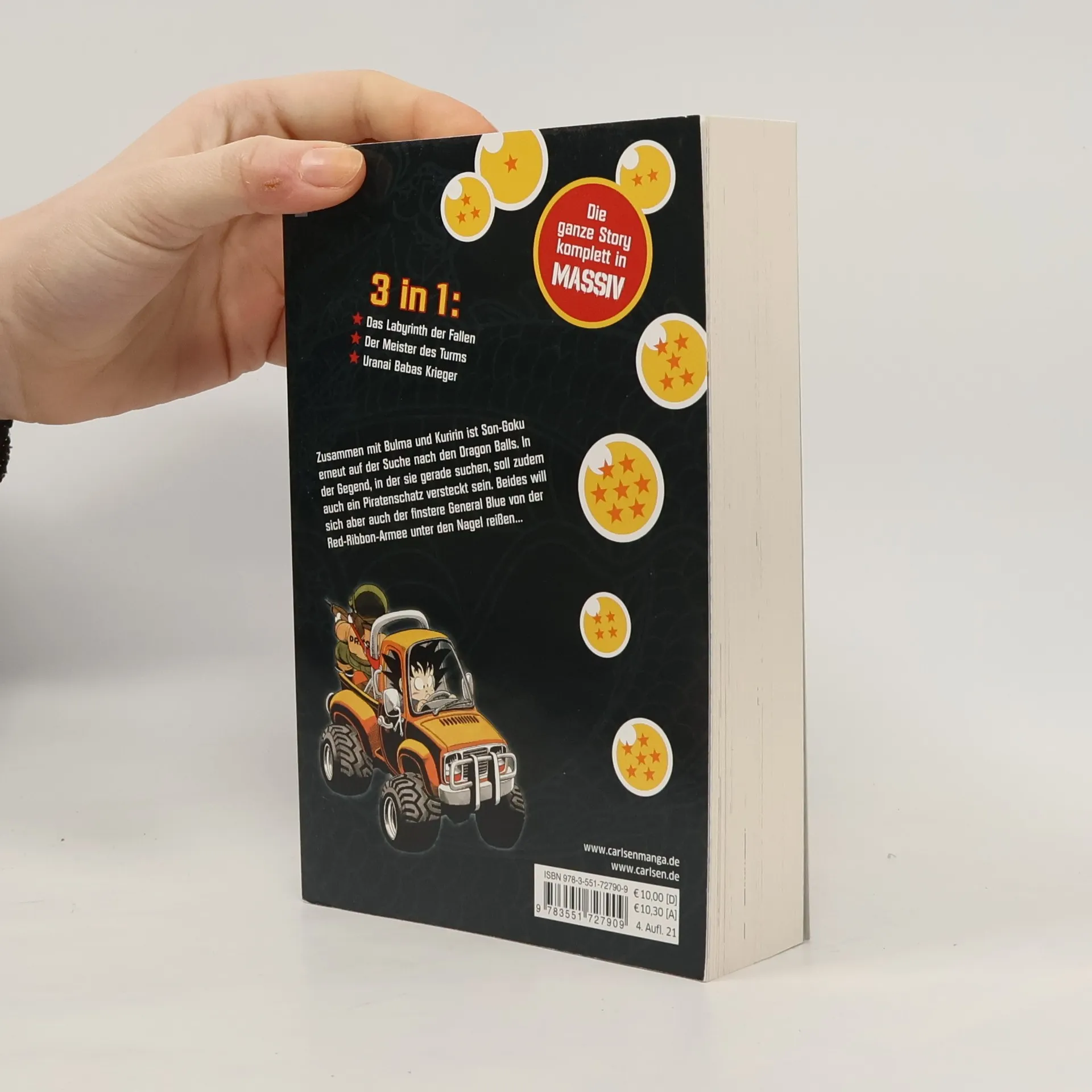 Nach dem Riesenerfolg von NARUTO MASSIV geht der nächste Manga-Hit als „fetter Klopper“ ins Rennen: DRAGON BALL MASSIV. Jeder der insgesamt 14 Sammelände wird mit jeweils mehr als 500 Seiten drei Taschenbuchausgaben umfassen und erscheint mit neuen Covern. Der Langzeit-Megaseller von Akira Toriyama als Neuedition zum Hammerpreis! Die Suche nach den sieben Dragon Balls kann wieder losgehen! Son-Goku rulez! Dieser dritte Band enthält die Manga-Kapitel aus den Taschenbüchern 7, 8 und 9.