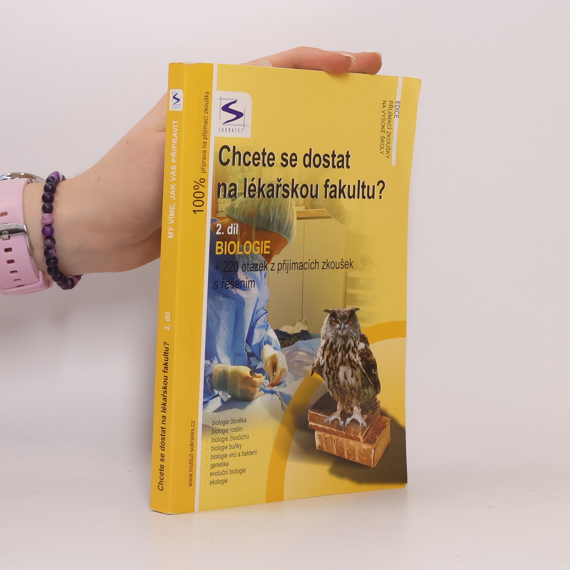 Kniha je jedinečnou pomůckou určenou uchazečům o studium na lékařských fakultách, obsahuje teoretické shrnutí problematiky + 220 testových otázek z minulých přijímacích zkoušek s řešením, a to z biologie. Je určena pro adepty na lékařskou fakultu UK v Praze, Lékařskou fakultu MU v Brně, Lékařskou fakultu UP v Olomouci, Veterinární a farmaceutickou univerzitu Brno a ostatní VŠ tohoto směru. ktuální pro rok 2007!!! Publikaci je vhodné zkombinovat s vysvětlením problematiky v dalších dílech.