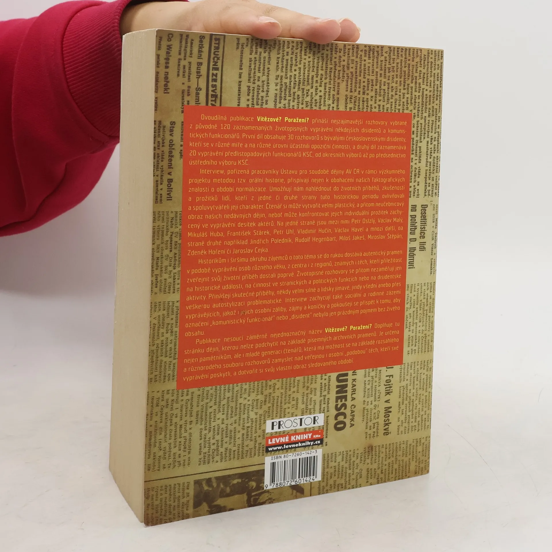 Dvoudílná publikace přináší nejzajímavější rozhovory vybrané z 120 zaznamenaných životopisných vyprávění disidentů a komunistických funkcionářů. První díl obsahuje 30 rozhovorů s bývalými československými disidenty, kteří se podíleli na opoziční činnosti, zatímco druhý díl zaznamenává 20 vyprávění předlistopadových funkcionářů KSČ. Interview, pořízená pracovníky Ústavu pro soudobé dějiny AV ČR, obohacují naše znalosti o období normalizace a umožňují nahlédnout do životních příběhů lidí, kteří tuto historickou periodu ovlivňovali. Čtenář si může vytvořit plastický obraz nedávných dějin konfrontováním individuálních prožitků desítek aktérů, mezi nimiž jsou jak disidenti, jako Václav Havel, tak funkcionáři, jako Miloš Jakeš. Publikace nabízí autentický pramen vyprávění osob různého věku a z různých regionů, přičemž se nezaměřuje pouze na historické události, ale také na sociální a rodinné zázemí vyprávějících. Cílem je, aby pojmy „komunistický funkcionář“ či „disident“ získaly živý obsah. Publikace, nesoucí název Vítězové? Poražení?, doplňuje dějiny, které nelze zachytit pouze písemnými prameny, a je určena jak pamětníkům, tak mladé generaci, která má možnost zamyslet se nad osobními příběhy těch, kteří vyprávěli.
