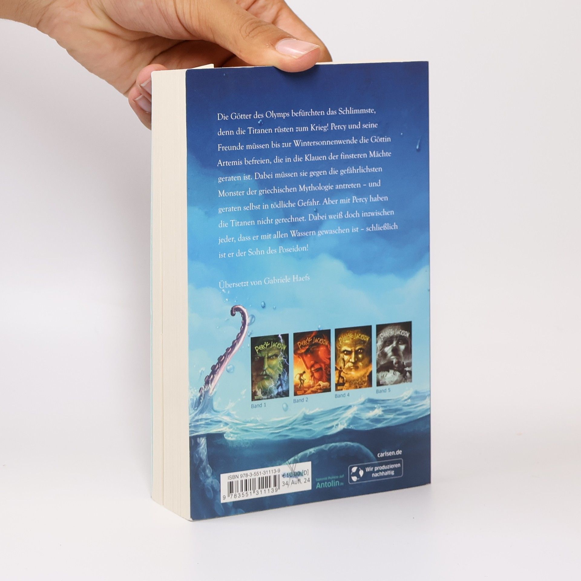 Bei den Göttern des Olymp herrscht Untergangsstimmung, denn die Titanen rüsten zum Krieg! Percy muss unbedingt bis zur Sonnenwende die Göttin Artemis befreien, die in die Klauen der finsteren Mächte geraten ist. Ein Abenteuer, das ihn und seine Freunde den gefährlichsten Kreaturen der griechischen Mythologie gegenübertreten lässt - und tödliche Gefahren birgt. Aber die Titanen haben offensichtlich vergessen, dass Percy mit allen Wassern gewaschen ist. Schließlich ist er der Sohn des Poseidon!