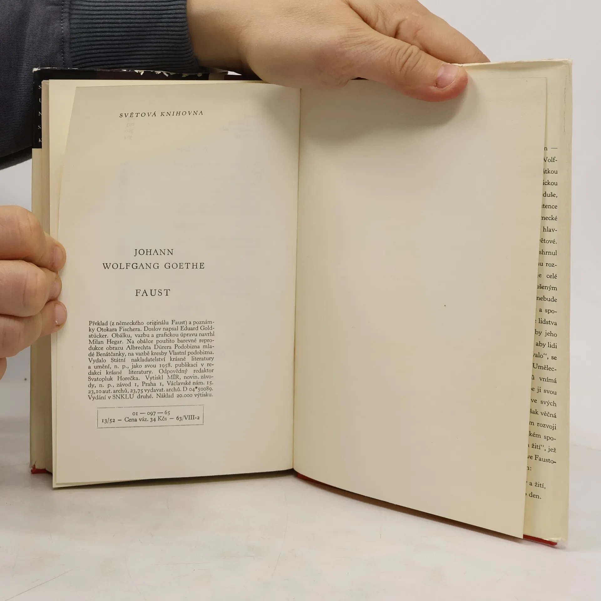 Vrcholné dílo německě literatury, dramatická báseň na prastarý motiv úmluvy člověka s ďáblem, v níž člověk, věčně toužící po dalších stupních dokonalosti, chce i za cenu zatracení poznat podstatu přírody a vezdejšího života. V průběhu téměř šedesáti let, kdy Goethe o Faustovipracoval, měnilo se dílo a rostlo zároveň se životem, zkušenostmi a moudrostí autora, až se stalo mohutnou básní, která přerůstá z malého světa osobní tragedie do velkého světa celého lidstva, spějícího za stálého přemáhám rozporů k vyšším stupňům dokonalosti. Cílem, v nějž vzrůstá vise umírajícího Fausta, je řád, v němž tvořivé, svobodné lidi spojí svazek společné práce.