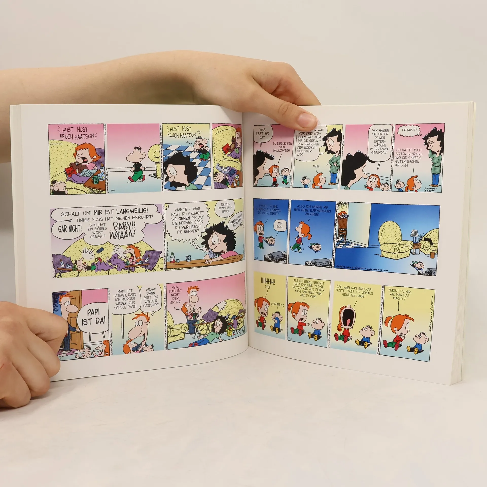 Es wurde auch allerhöchste Zeit, dass dem eigentlichen Familienoberhaupt in allen Kulturen ein eigener Titel in der grandiosen Erfolgsserie um die lieben Kleinen und deren Dompteure eingeräumt wird: der Mutter! Im schon siebten Band ist der kleine Timmi bereits alt genug, um im Team mit seiner großen Schwester die Umwelt in jeder Hinsicht aus dem Lot zu bringen. Seien es Monster unter dem Bett, der Osterhase im Garten oder die Nachbarskinder - nichts ist sicher vor den Untersuchungen und Experimenten der beiden Racker, die wie alle Kinder ihre Eltern in den Wahnsinn treiben würden - wenn diese dort nicht schon längst angekommen wären. Es dürfen sich wieder Tausende junger Eltern, Großeltern, Nenntanten und Patenonkel freuen - der nächste, farbige Band der Serie wird wieder die Herzen aller Menschen mit Kinderkontakt höher schlagen lassen!