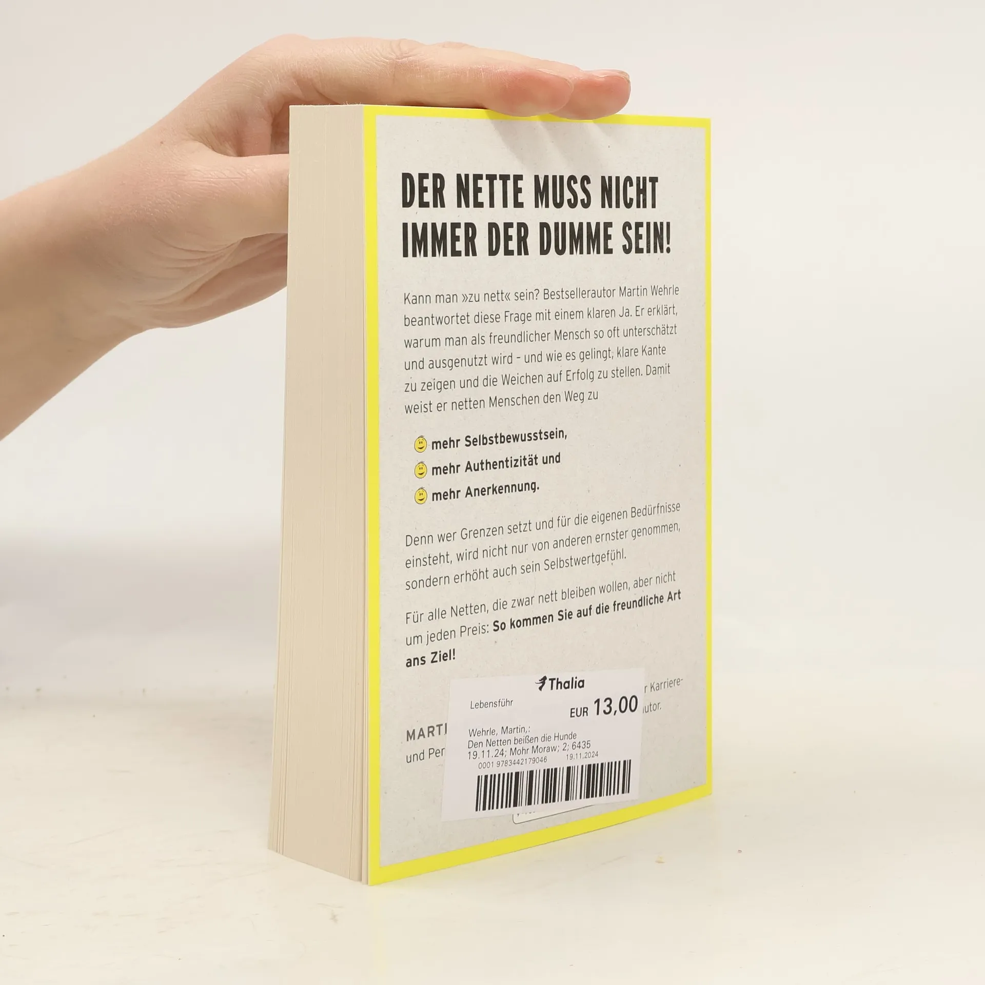 Martin Wehrle zeigt, dass man als netter Mensch oft unterschätzt und ausgenutzt wird. Er gibt Tipps, wie man Selbstbewusstsein, Authentizität und Anerkennung steigern kann, indem man klare Grenzen setzt und für die eigenen Bedürfnisse einsteht. Ein Ratgeber für alle, die nett bleiben, aber auch erfolgreich sein wollen.