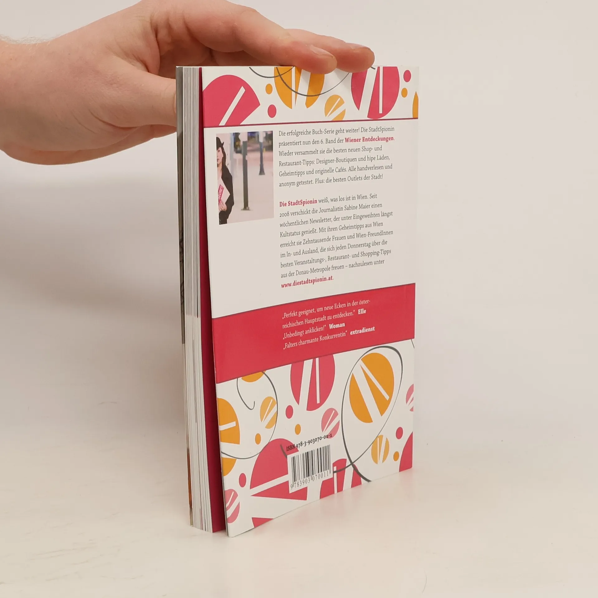 Die erfolgreiche Buchserie geht weiter! Nach den beliebten ersten Büchern präsentiert die StadtSpionin nun den 6. Band der "Wiener Entdeckungen". Wieder versammelt sie hundert neue Shop- und Restaurant-Tipps: Designer-Boutiquen und hipe Läden, Geheim-Tipps und originelle Cafés. Handverlesen und nach Bezirken geordnet. Die StadtSpionin weiß, was los ist in Wien. Seit 2008 verschickt die Journalistin Sabine Maier einen wöchentlichen Newsletter, der unter Eingeweihten längst Kultstatus genießt. Mit ihren Geheimtipps aus Wien erreicht sie Tausende Frauen und Wien-FreundInnen im In- und Ausland, die sich jeden Donnerstag über die besten Veranstaltungs-, Restaurant- und Shopping-Tipss aus der Donau-Metropole freuen - nachzulesen unter www.diestadtspionin.at
