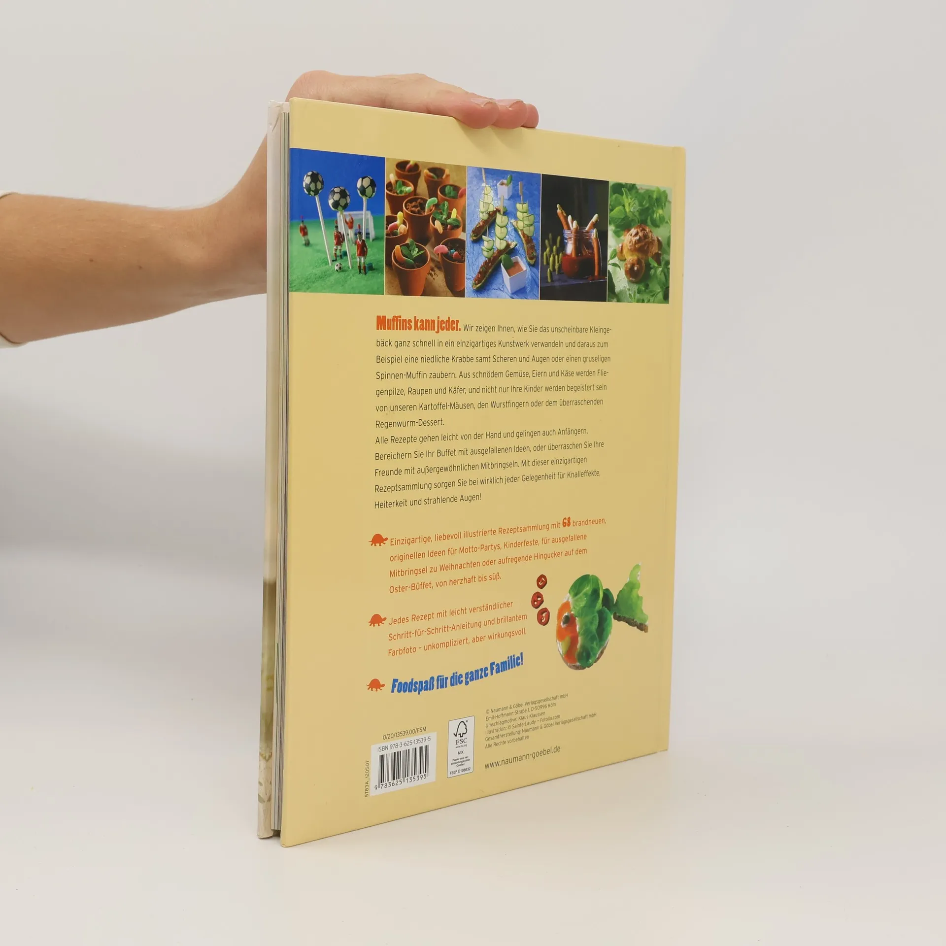 Und mit Essen spielt man doch! Muffins kann jeder. Wir zeigen Ihnen, wie Sie einen Muffin ganz schnell in ein einzigartiges Kunstwerk verwandeln und daraus einen niedlichen Krabben-Muffin samt Scheren und Augen oder einen gruseligen Spinnen-Muffin zaubern. Aus schnödem Gemüse werden Fliegenpilze, Raupen und Käfer, und nicht nur Ihre Kinder werden begeistert sein von unseren Mäuschen-Kartoffeln, den Wurst-Fingern oder dem überraschenden Regenwurm-Dessert. Alle Rezepte gehen leicht von der Hand und gelingen auch Anfängern. Bereichern Sie Ihr Buffet mit ausgefallenen Ideen, oder überraschen Sie Ihre Freunde mit außergewöhnlichen Mitbringseln – mit dieser einzigartigen Rezeptsammlung sorgen Sie bei wirklich jeder Gelegenheit für Knalleffekte, Heiterkeit und strahlende Augen!