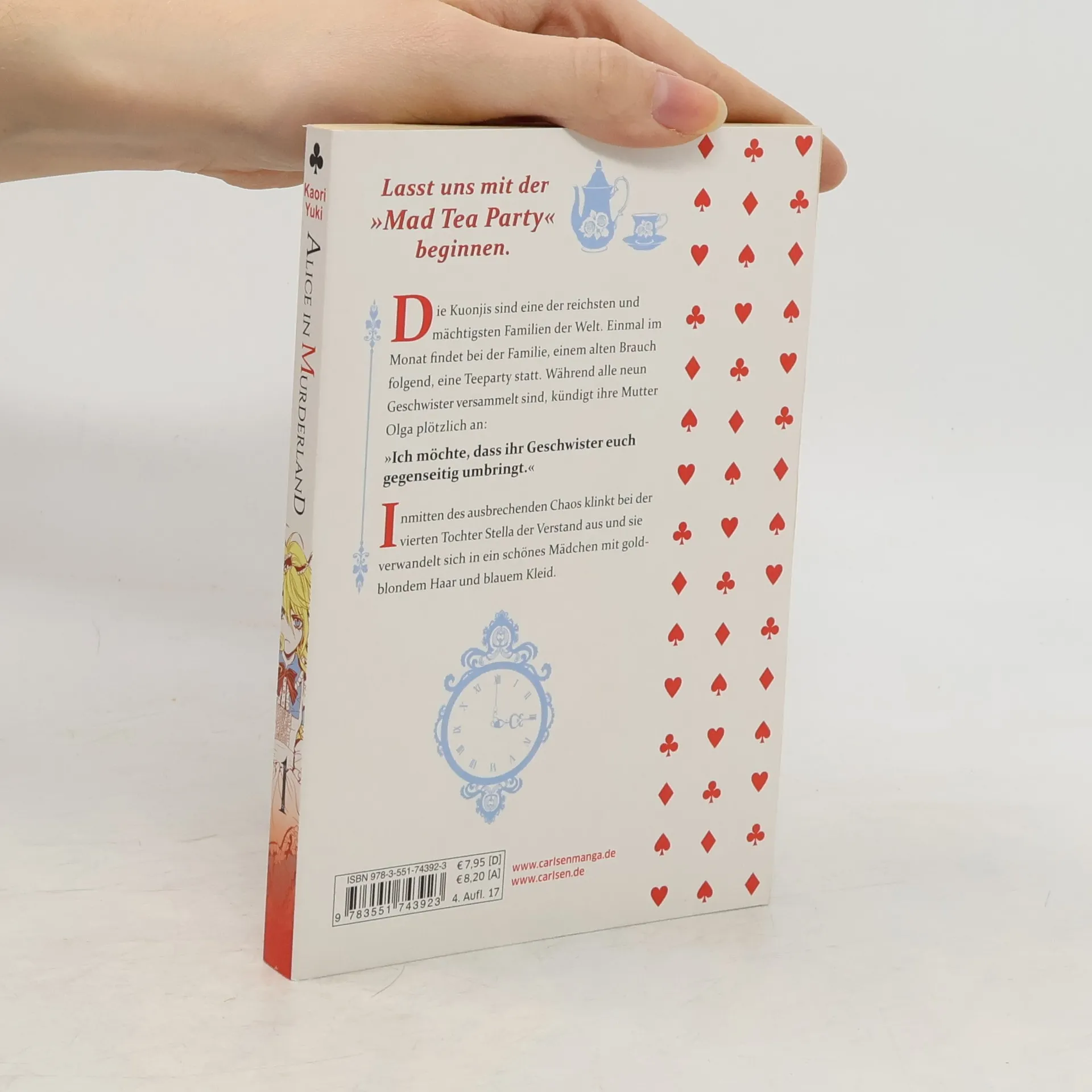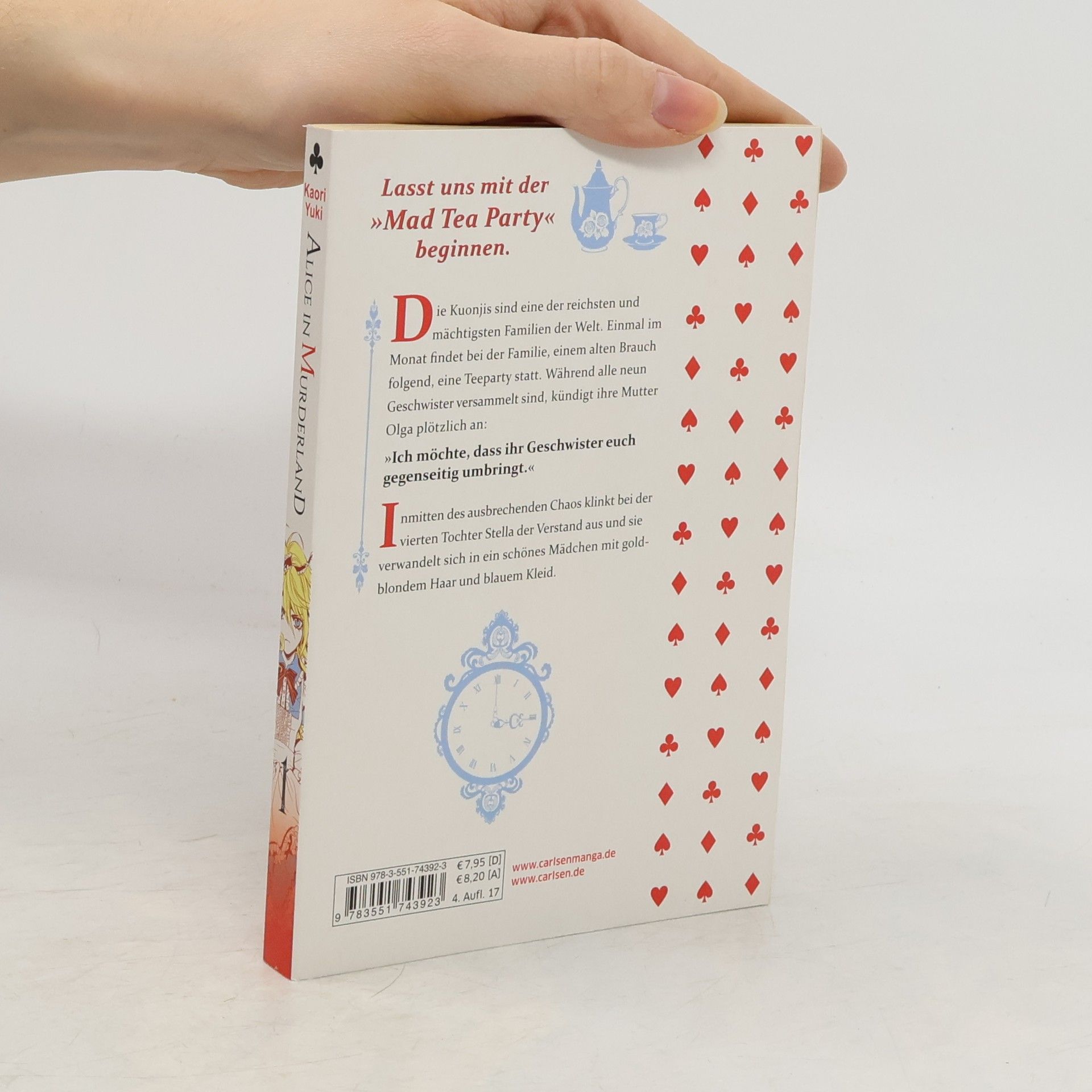 Eine blutrünstige Tee-Party, die ihr niemals vergessen werdet! Jeden Monat treffen sich die Mitglieder der superreichen und extrem einflussreichen Familie Kuonji zu ihrer »Mad Tea Party« – die einzige bewährte Familientradition. Auf einem jener Treffen teilt die Mutter Olga Kuonji ihren neun Kindern eine völlig unerwartete und schreckliche Nachricht mit: Die Geschwister müssen solange gegen einander kämpfen, bis nur noch einer von ihnen lebt und so zum neuen Oberhaupt des Clans wird… Die blutigen Spiele sind eröffnet! Verrückt-fantastischer Gruselspaß in einer märchenhaften Welt, geschaffen von Erfolgsmangaka Yuki Kaori (ANGEL SANCTUARY)! Bittersüß und schauderhaft schön. Weitere Informationen: - Abgeschlossen in 11 Bänden - Empfohlen ab 14 Jahren