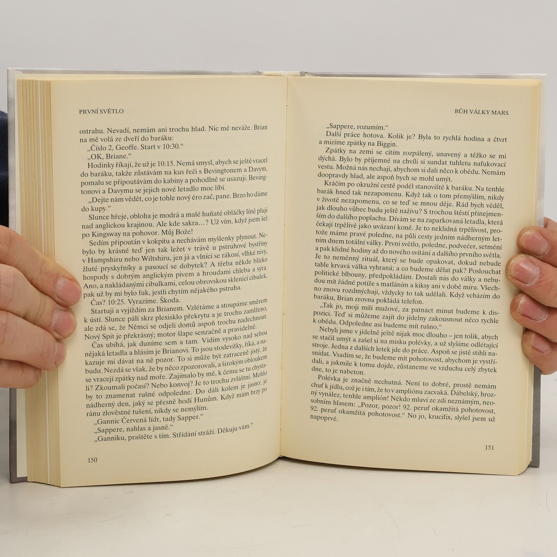 Dva měsíce před vypuknutím druhé světové války opouští sedmnáctiletý Geoffrey Wellum školu, aby se stal pilotem u RAF. Srší mladistou energií a nadšením, absolvuje základní přípravu a jako nejmladší pilot nastoupí do prestižní 92. perutě. Téměř okamžitě je vržen do boje a několikrát denně vzlétá do děsivých soubojů s německými Me109. Během následujících měsíců hraje spolu se svými kolegy piloty klíčovou roli v bitvě o Británii. Z přátel, kteří vzlétají do vzduchu stejně jako Wellum, se však mnozí nevracejí. Padesát let po válce vydává Geoffrey Wellum poprvé First Light, poutavé svědectví o svých zkušenostech bojového pilota. Pro svoji poutavost a nesmírnou živost líčení dějů se drží První světlo stále vysoko na žebříčku britských bestsellerů.