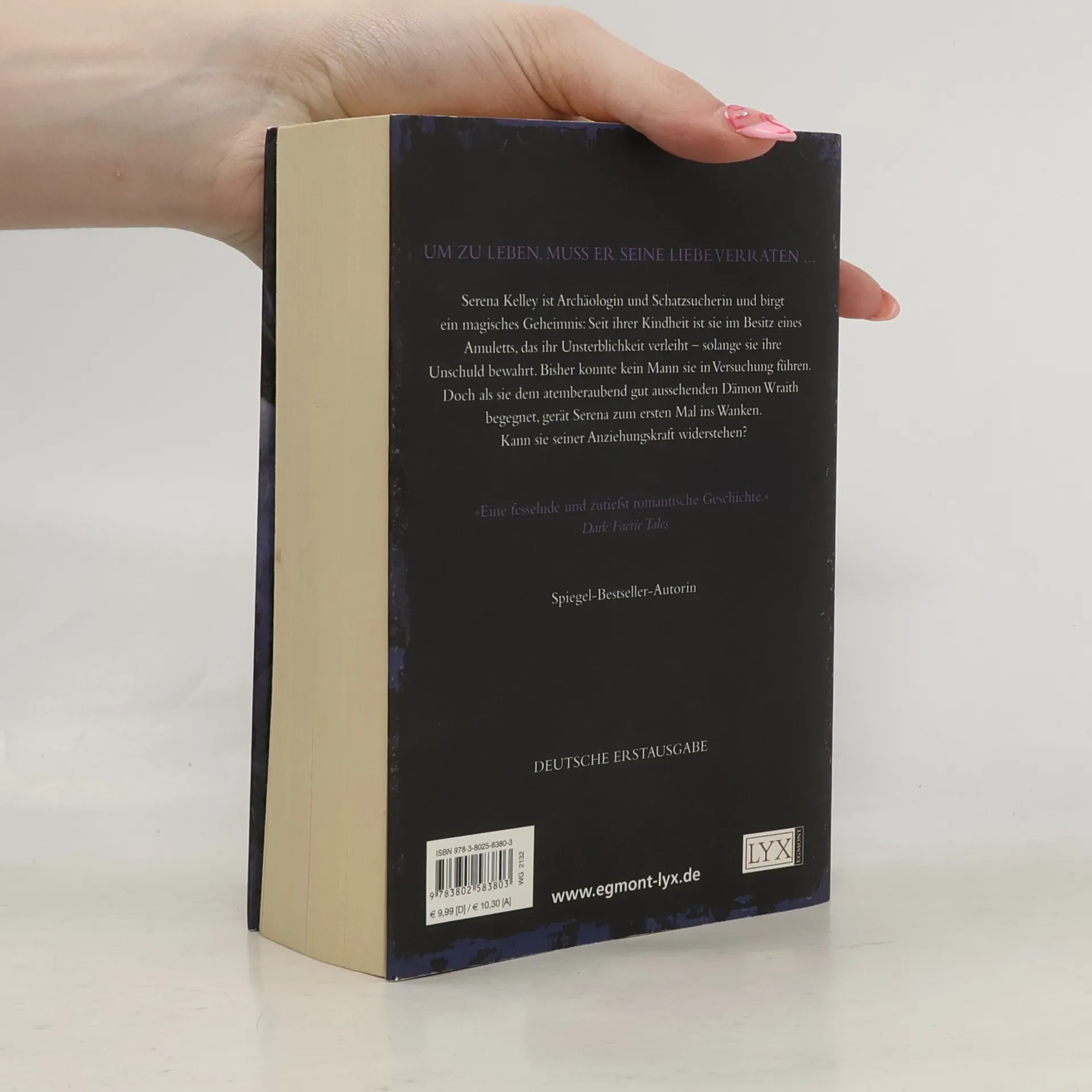 Serena Kelley ist Archäologin und Schatzsucherin und birgt ein magisches Geheimnis. Seit ihrem siebten Lebensjahr ist sie im Besitz eines Amuletts, das ihr Unsterblichkeit verleiht - solange sie ihre Unschuld bewahrt. Bisher konnte kein Mann sie in Versuchung führen. Doch als sie dem atemberaubend gut aussehenden Dämon Wraith begegnet, gerät Serena zum ersten Mal ins Wanken. Kann sie seiner Anziehungskraft widerstehen?