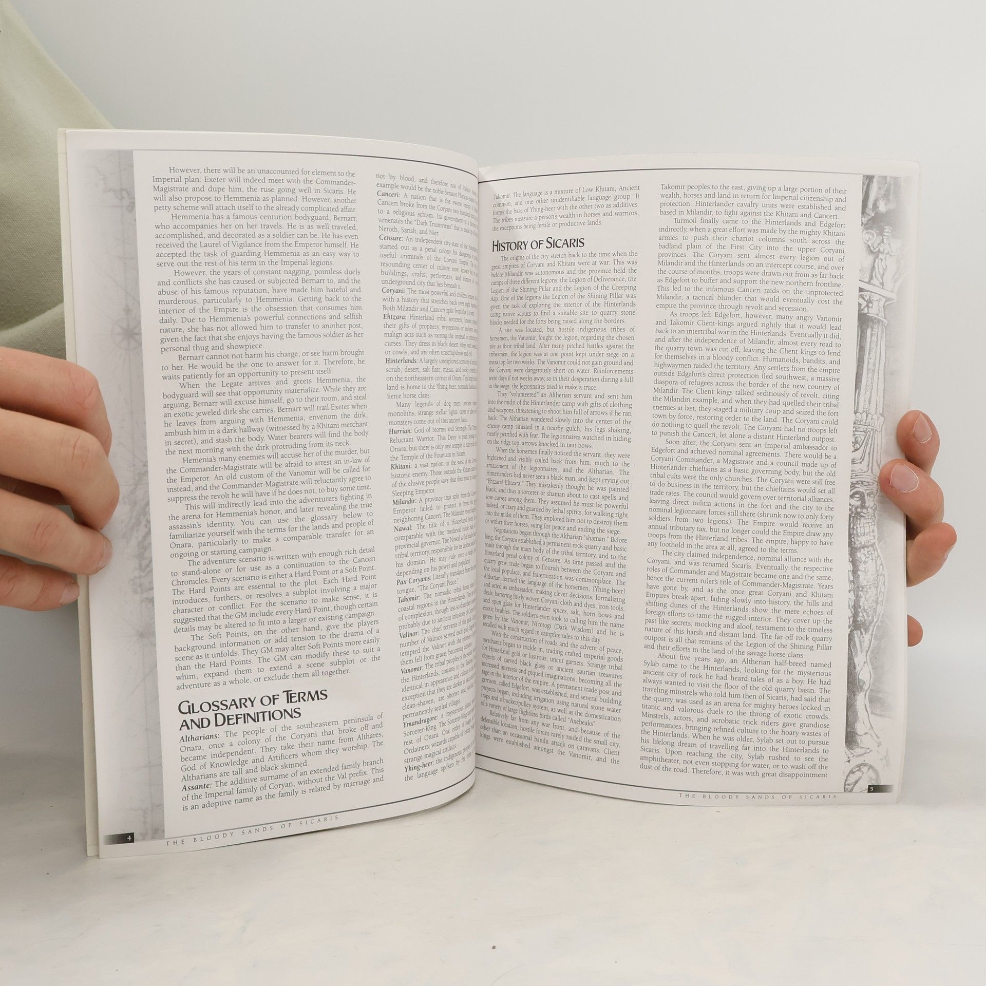 The petty and traitorous schemes of a distant Hinterland commander strike at the very heart of the Coryani. Rumors of collaboration with the dismal, gloomy powers of Canceri send the Imperial council into a panic, and the brink of war looms again over an uncertain future for the peoples of the Imperium. Thrust into the intrigues of mighty nations and the sinister plans of the far flung cities of foreign lands, the players go in secret with an Imperial legate on a task of direst importance to the ancient outpost of Sicaris. The mission is To bring back a wayward noble daughter of the Imperial family of val'Assante', and to find the source of the turmoil that seeks to tip the teetering balance of power. These objectives will lead the heroes into a shadow war of sinister alliances, secretive cabals, assassins, spies, and unfolding machinations, a twisting path that may lead to both theirs and the Empire's salvation, or its' downfall.