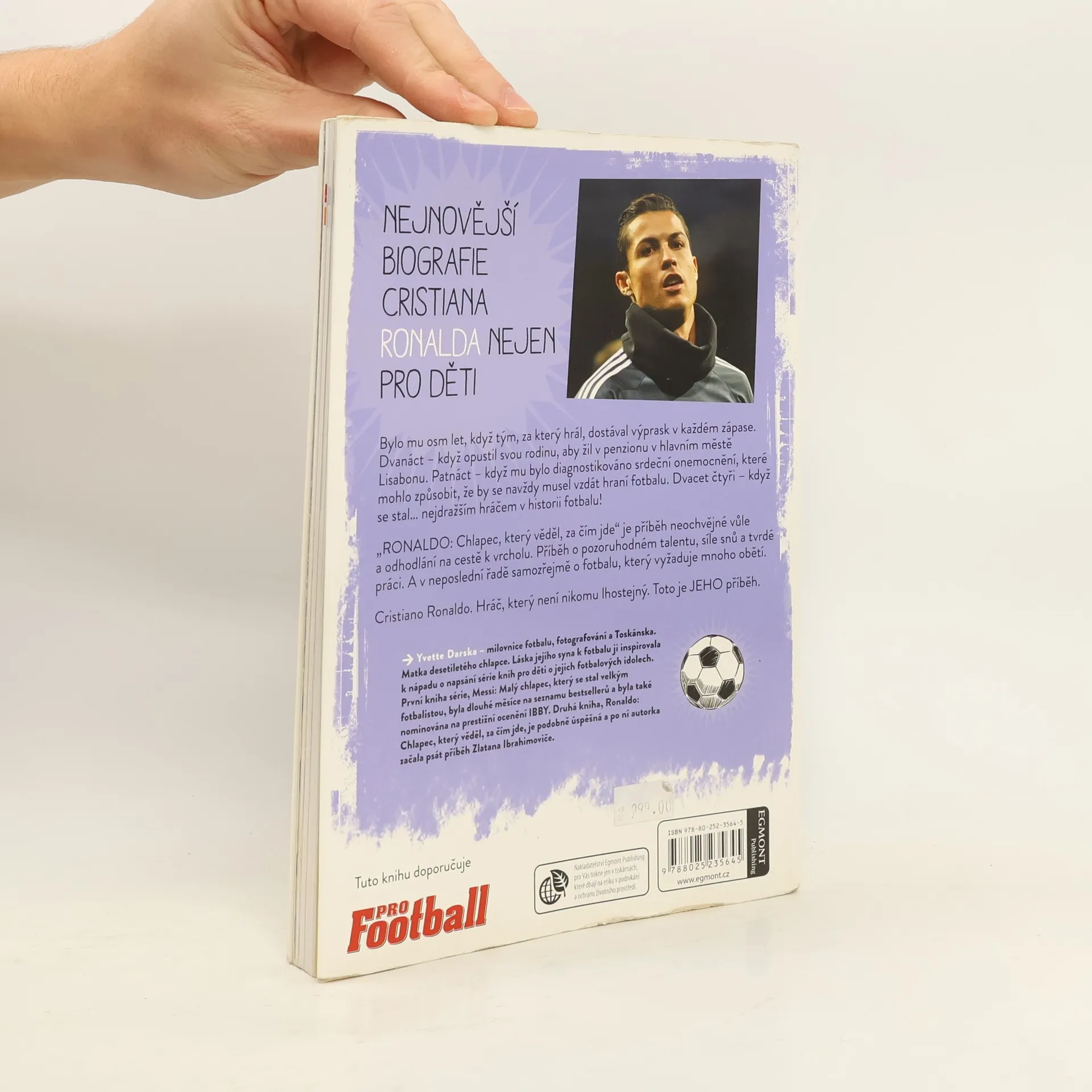 „RONALDO - Chlapec, který věděl, za čím jde“ je příběh neochvějné vůle a odhodlání na cestě k vrcholu, součást série unikátně pojatých knížek o slavných fotbalistech. Autorka vypráví o pozoruhodném talentu, síle snů, tvrdé práci a v neposlední řadě o fotbalové kariéře, která vyžaduje mnoho obětí. Kniha rovněž obsahuje spoustu málokdy publikovaných fotografií z Ronaldova dětství a dospívání. Ideální i pro mladší čtenáře!