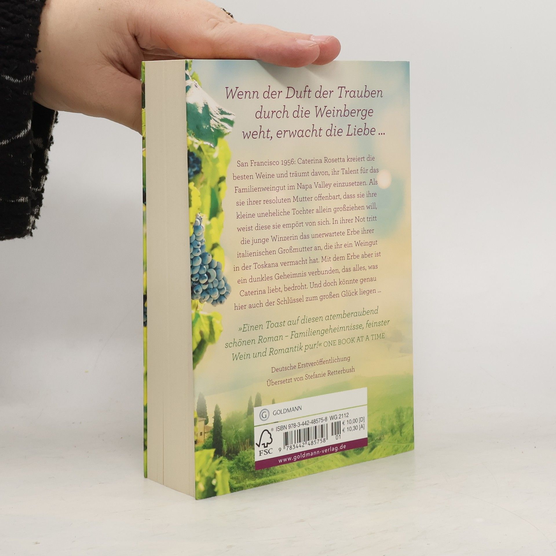 Kalifornien 1956: In einer Zeit strenger gesellschaftlicher Regeln kämpft die junge Winzerin Caterina für ihr Glück. San Francisco 1956: Die junge Winzerin Caterina kreiert die besten Weine und träumt davon, ihr Talent für das Familienweingut im Napa Valley einzusetzen. Dafür muss sie aber ihrer resoluten Mutter Ava endlich die Wahrheit offenbaren: Denn Caterina hat eine kleine uneheliche Tochter und ist fest entschlossen, sie trotz der gesellschaftlichen Ablehnung allein großzuziehen. Doch nach ihrem Geständnis weist Ava sie von sich. In ihrer Not tritt Caterina das unerwartete Erbe ihrer italienischen Großmutter an, die ihr ein Weingut in der entfernten Toskana vermacht hat. Doch mit dem Erbe ist ein dunkles Geheimnis verbunden, das alles, was Caterina liebt, bedroht – aber vielleicht auch der Schlüssel zum großen Glück ist ...