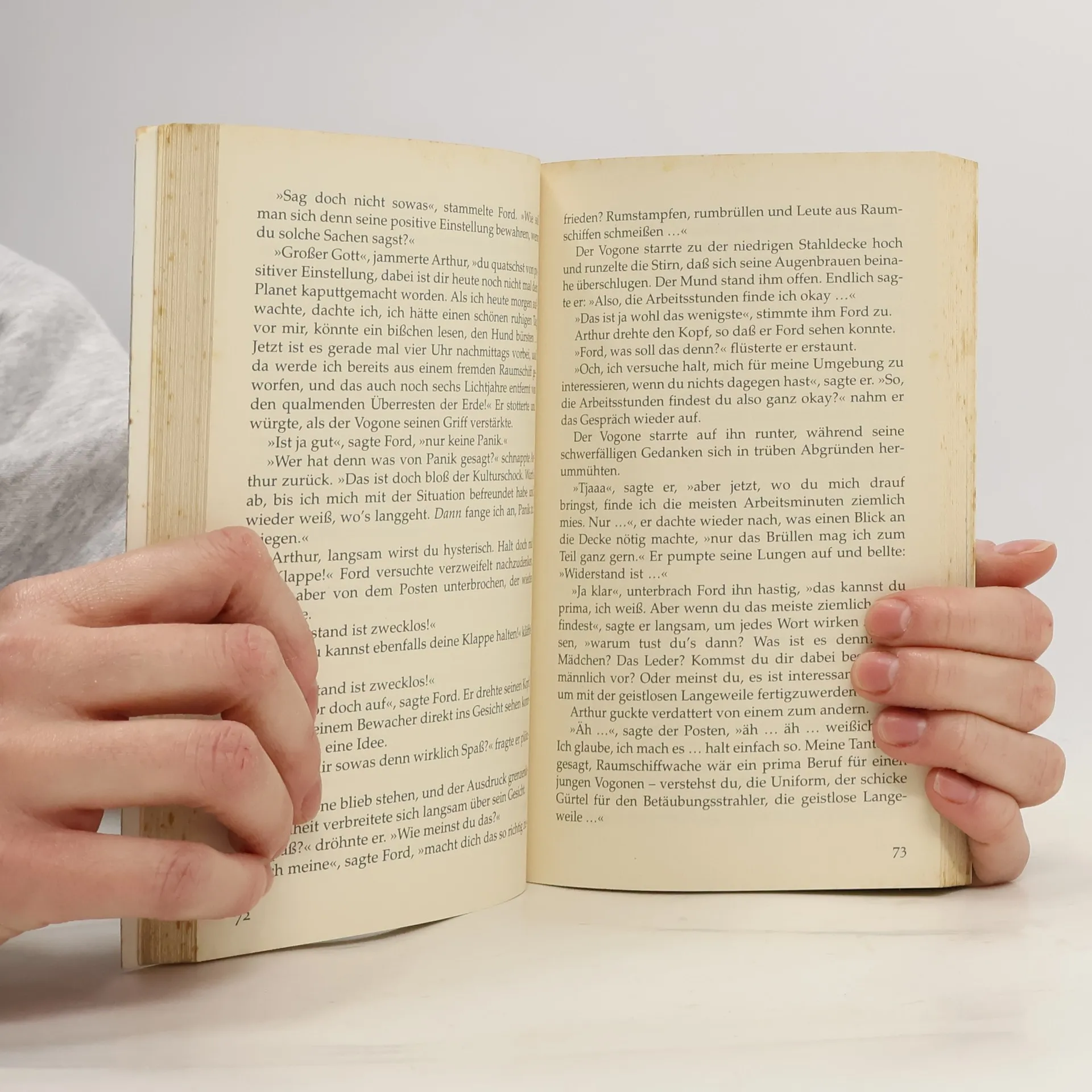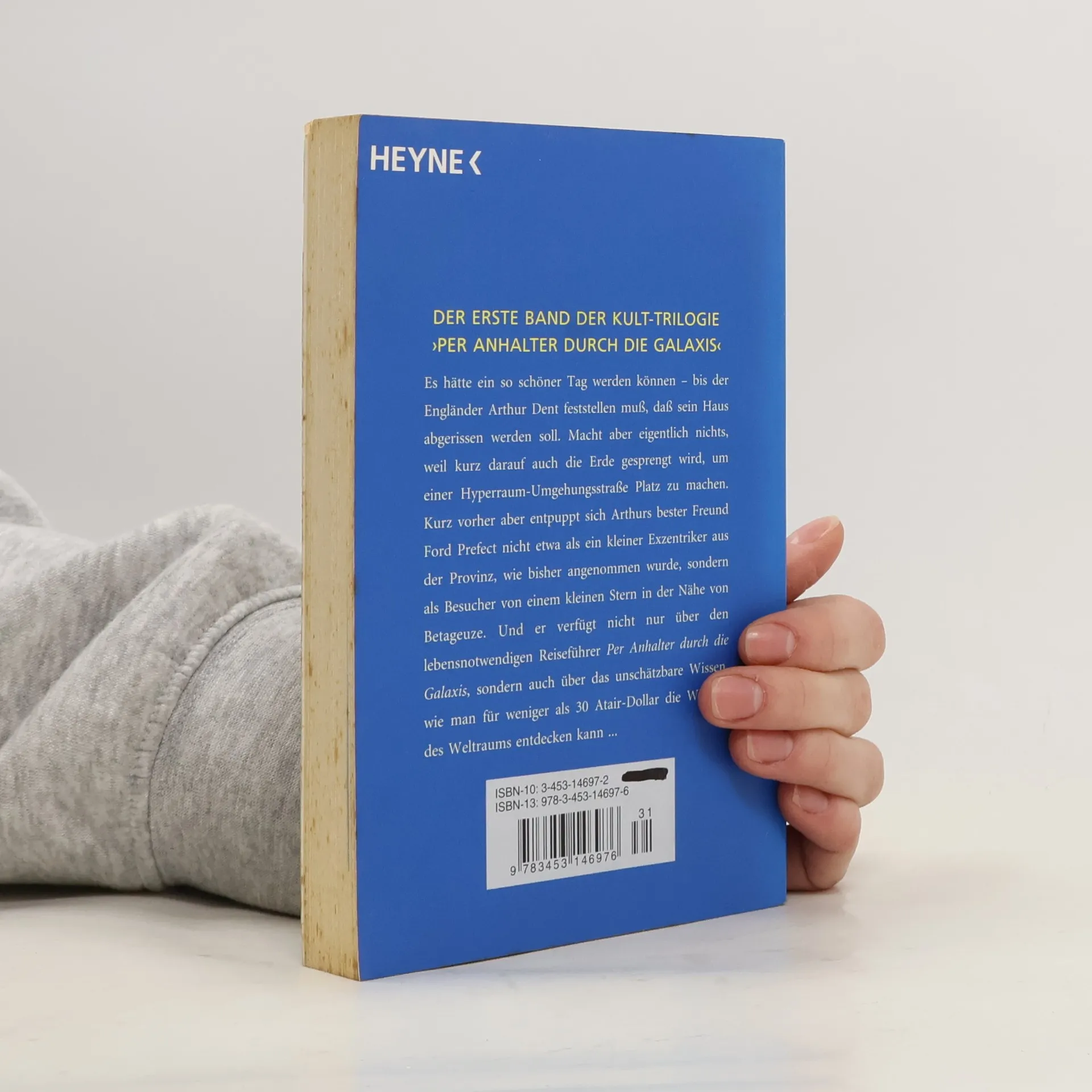 Der erste Band der fünfteiligen TrilogieVor 30 Jahren wurde von einem der größten Verlage Ursa Minors (und der Erde) das bemerkenswerteste Buch, das je veröffentlicht wurde, der Menschheit zugänglich gemacht: Per Anhalter durch die Galaxis. Für Arthur Dent ist es ein ganz normaler Donnerstag, bis sein Haus von Planierraupen niedergewalzt wird. Kurz darauf wird allerdings auch die gesamte Erde von einem vogonischen Bautrupp plattgemacht, weil sie einer Hyperraum-Umgehungsstraße weichen muss. Aber da hat sich Arthurs bester Freund schon längst als Alien entpuppt, und sie sausen durchs Weltall mit nichts als ihren Badetüchern und einem harmlos wirkenden Buch, auf dem in großen, freundlichen Buchstaben »KEINE PANIK« steht. Und dabei hat das Wochenende gerade erst angefangen…