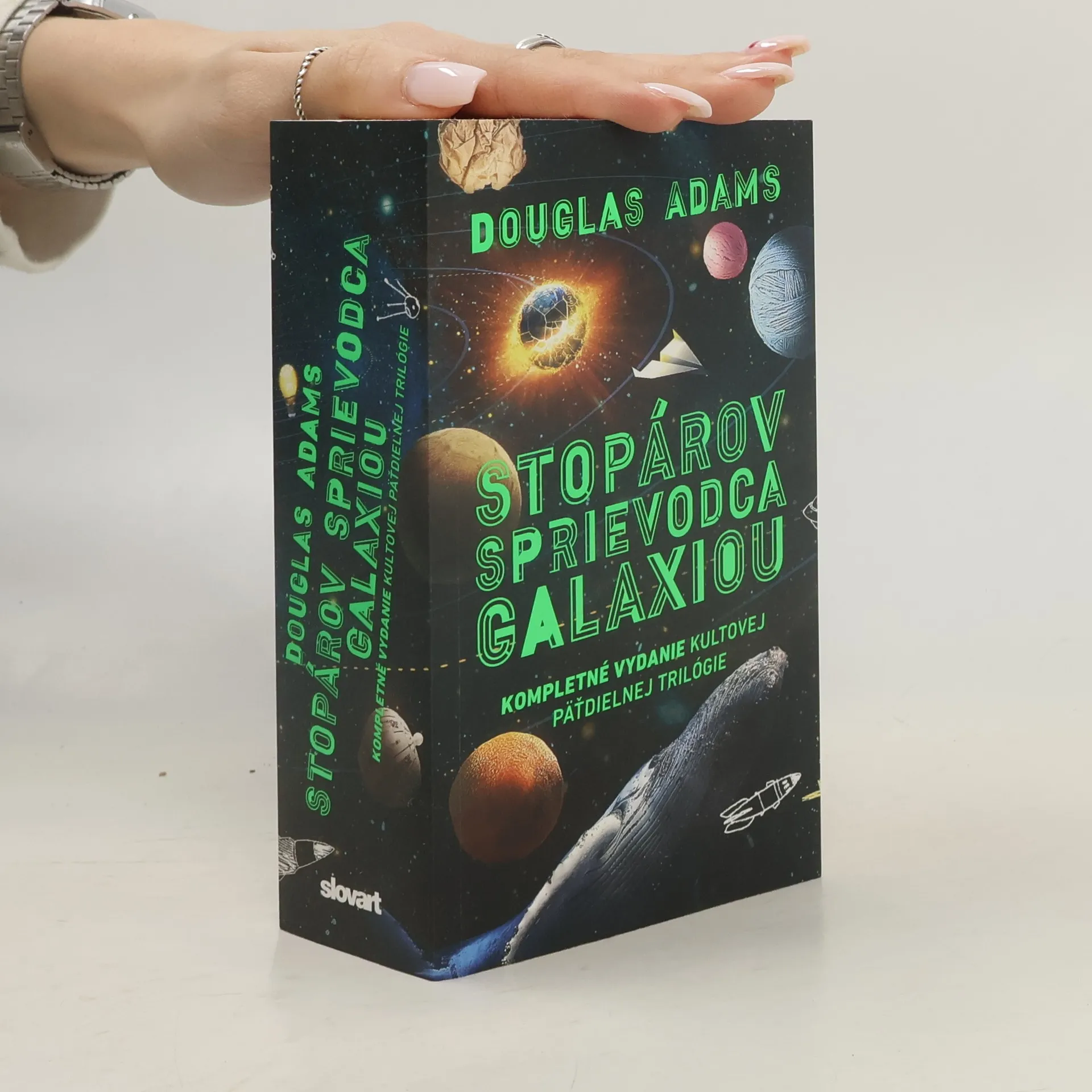 Prvýkrát vychádza kultové dielo Douglasa Adamsa v jednom zväzku! Päťdielna trilógia vychádza pre fanúšikov ako narodeninový darček od Vydavateľstva SLOVART k nášmu (a vášmu) výročiu. Dnes už vieme, že Stopárov sprievodca galaxiou je najvtipnejšia sci-fi séria na svete. Toto vydanie obsahuje všetkých päť dielov a začína sa knihou Stopárov sprievodca galaxiou, v ktorej chvíľu pred zničením Zeme Arthura Denta zachráni jeho priateľ Ford Perfect a odvezie ho do hlbín vesmíru; v časti Reštaurácia na konci sveta sa obaja hrdinovia chtiac-nechtiac pustia do hľadania pána sveta; v diele Život, vesmír a všetko sa pokúsia zachrániť vesmír; v Zbohom a ďakujeme za ryby sa Arthur Dent stretáva s dievčinou svojich snov a v záverečnej časti Zväčša neškodná si Arthur hľadá nový domov, stretáva sa s pubertálnou dcérou a túži svoju genialitu uplatniť pri výrobe sendvičov. Z tichého života ho vytrhne, ako zvyčajne, Ford.