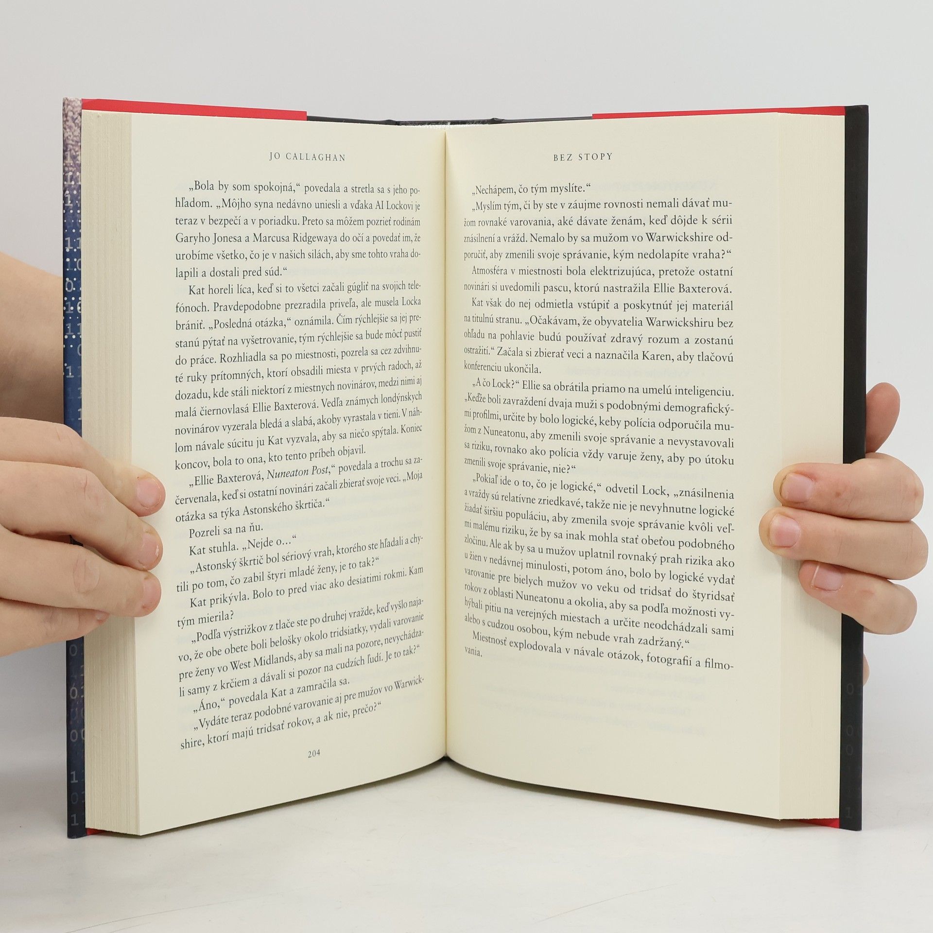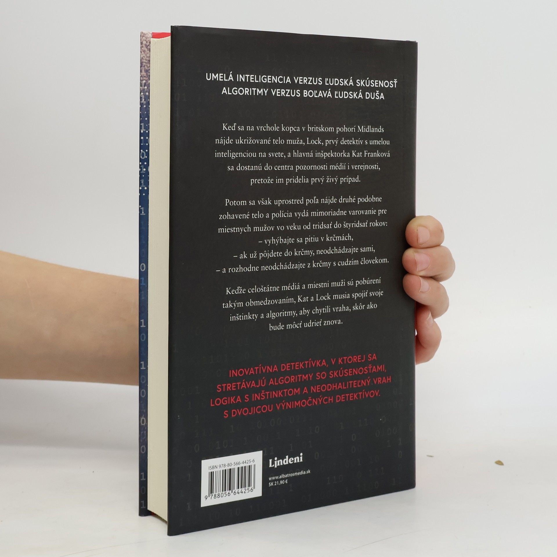 "Umelá inteligencia verzus ľudská skúsenosť, algoritmy verzus boľavá ľudská duša" Keď sa na vrchole kopca v britskom pohorí Midlands nájde ukrižované telo muža, Lock, prvý detektív s umelou inteligenciou na svete, a hlavná inšpektorka Kat Franková sa dostanú do centra pozornosti médií i verejnosti, pretože im pridelia prvý živý prípad. Potom sa však uprostred poľa nájde druhé podobne zohavené telo a polícia vydá mimoriadne varovanie pre miestnych mužov vo veku od tridsať do štyridsať rokov: – vyhýbajte sa pitiu v krčmách, – ak už pôjdete do krčmy, neodchádzajte sami, – a rozhodne neodchádzajte z krčmy s cudzím človekom. Keďže celoštátne médiá a miestni muži sú pobúrení takým obmedzovaním, Kat a Lock musia spojiť svoje inštinkty a algoritmy, aby chytili vraha, skôr ako bude môcť udrieť znova. Inovatívna detektívka, v ktorej sa stretávajú algoritmy so skúsenosťami, logika s inštinktom a neodhaliteľný vrah s dvojicou výnimočných detektívov.
