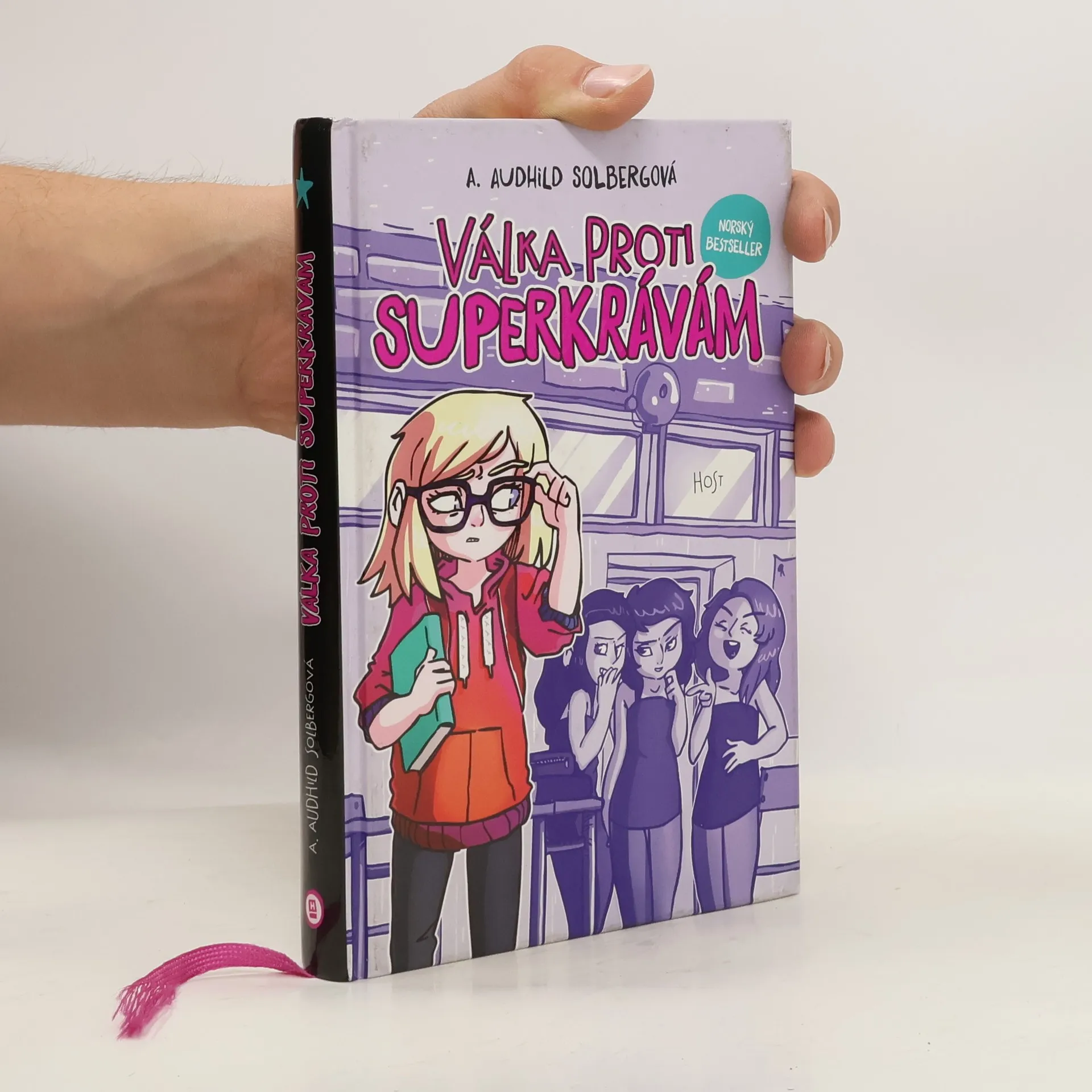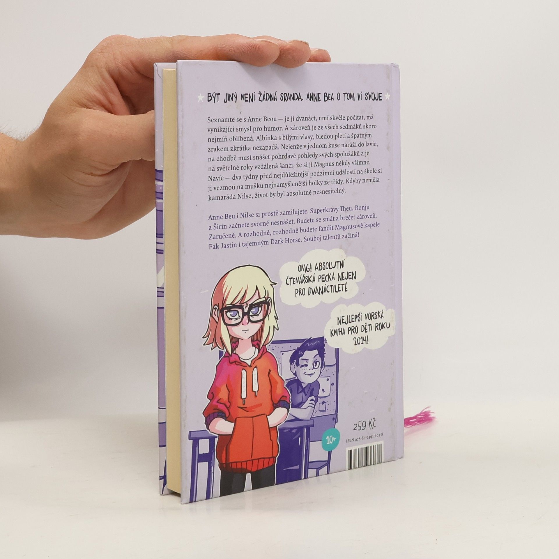 Být jiný není žádná sranda. Anne Bea o tom ví svoje. Seznamte se s Anne Beou — je jí dvanáct, umí skvěle počítat, má vynikající smysl pro humor. A zároveň je ze všech sedmáků skoro nejmíň oblíbená. Albínka s bílými vlasy, bledou pletí a špatným zrakem zkrátka nezapadá. Nejenže v jednom kuse naráží do lavic, na chodbě musí snášet pohrdavé pohledy svých spolužáků a je na světelné roky vzdálená šanci, že si jí Magnus někdy všimne. Navíc — dva týdny před nejdůležitější podzimní událostí na škole si ji vezmou na mušku nejnamyšlenější holky ze třídy. Kdyby neměla kamaráda Nilse, život by byl absolutně nesnesitelný. Anne Beu i Nilse si prostě zamilujete. Superkrávy Theu, Ronju a Širin začnete svorně nesnášet. Budete se smát a brečet zároveň. Zaručeně. A rozhodně, rozhodně budete fandit Magnusově kapele Fak Jastin i tajemným Dark Horse. Souboj talentů začíná!