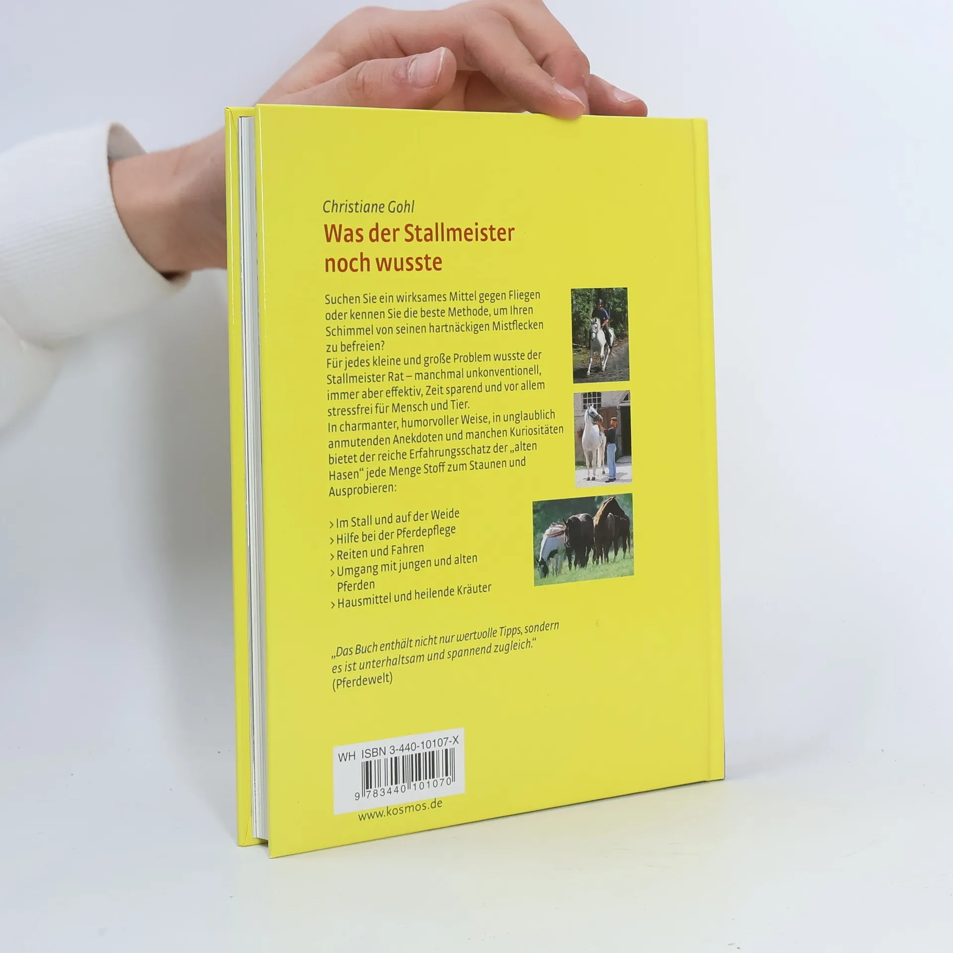 Der Erfahrungsschatz der alten Stallmeister überzeugt auch heutige Reiter durch unkonventionelle Ratschläge, Ideen und Lösungen – ob bei Reitproblemen oder in der Stall- und Weidepraxis. Das lädt zum Ausprobieren ein! Nützlich, praktisch und gewürzt mit einer kräftigen Prise Humor enthält dieses Werk das gesammelte Wissen der alten Stallmeister – mit garantiertem Lesevergnügen von der ersten bis zur letzten Seite!
