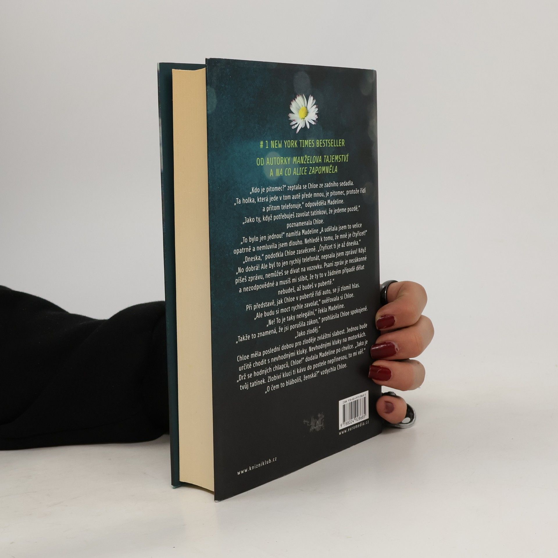 Jane je hloubavá, do sebe uzavřená šedá myška a v životě to vůbec nemá jednoduché, protože sama vychovává pětiletého syna. A ten se teď navíc začal ptát po svém tátovi. Madeline je velká parádnice a přitom neřízená střela. Momentálně jí ztrpčuje život její exmanžel: po letech si zničehonic vzpomněl, že by se mohl taky podílet na výchově jejich společné dcery. Celeste je věčně zasněná, poněkud vynervovaná místní kráska. Co ji ale může trápit, když má tak hodného, hříšně bohatého manžela a přepychový dům? Snad jen ta jejich dvojčata jsou občas na zabití. Každá z nich je úplně jiná, a přesto jsou nejlepší kamarádky. Jsou však k sobě skutečně upřímné? Vždyť i drobné lži a polopravdy můžou časem vyústit v obrovskou tragédii. Román světově úspěšné autorky bestselleru Manželovo tajemství je příběhem tří matek, jimž se jejich na pohled všední životy krůček za krůčkem nebezpečně vymykají z rukou. HBO natáčí podle této knižní předlohy minisérii s Nicole Kidmanovou a Reese Witherspoonovou v hlavních rolích.