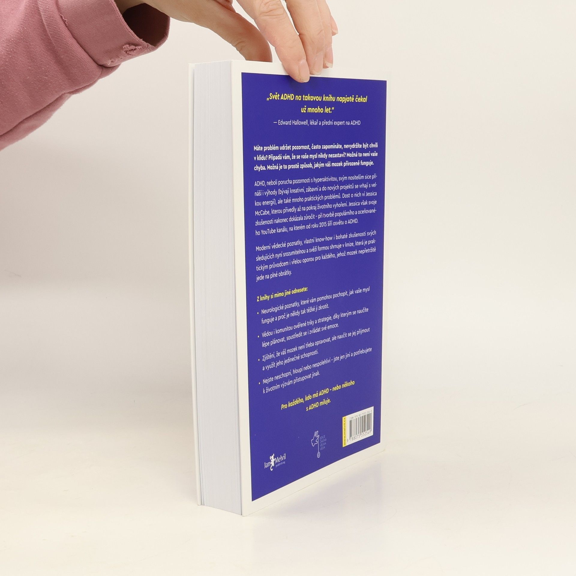 ADHD, neboli porucha pozornosti s hyperaktivitou, svým nositelům sice přináší i výhody (bývají kreativní, zábavní a do nových projektů se vrhají s velkou energií), ale také mnoho praktických problémů. Dost o nich ví Jessica McCabe, kterou přivedly až na pokraj životního vyhoření. Jessica však svoje zkušenosti nakonec dokázala zúročit – při tvorbě populárního a oceňovaného YouTube kanálu, na kterém od roku 2015 šíří osvětu o ADHD. Moderní vědecké poznatky, vlastní know-how i bohaté zkušenosti svých sledujících nyní srozumitelnou a svěží formou shrnuje v knize, která je praktickým průvodcem i vřelou oporou pro každého, jehož mozek nepřetržitě jede na plné obrátky. PRO KAŽDÉHO, KDO MÁ ADHD – NEBO NĚKOHO S ADHD MILUJE.