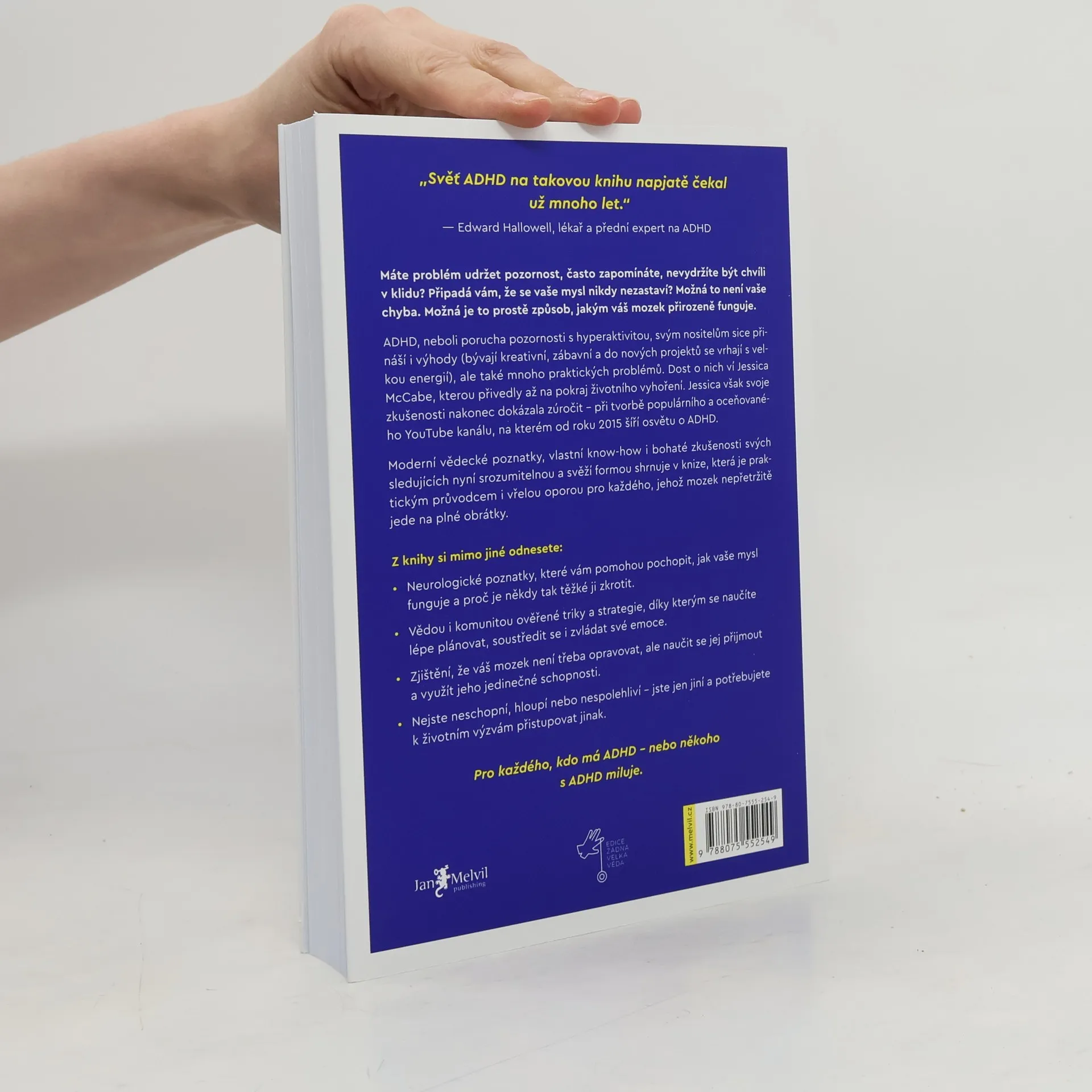 ADHD, neboli porucha pozornosti s hyperaktivitou, svým nositelům sice přináší i výhody (bývají kreativní, zábavní a do nových projektů se vrhají s velkou energií), ale také mnoho praktických problémů. Dost o nich ví Jessica McCabe, kterou přivedly až na pokraj životního vyhoření. Jessica však svoje zkušenosti nakonec dokázala zúročit – při tvorbě populárního a oceňovaného YouTube kanálu, na kterém od roku 2015 šíří osvětu o ADHD. Moderní vědecké poznatky, vlastní know-how i bohaté zkušenosti svých sledujících nyní srozumitelnou a svěží formou shrnuje v knize, která je praktickým průvodcem i vřelou oporou pro každého, jehož mozek nepřetržitě jede na plné obrátky. PRO KAŽDÉHO, KDO MÁ ADHD – NEBO NĚKOHO S ADHD MILUJE.