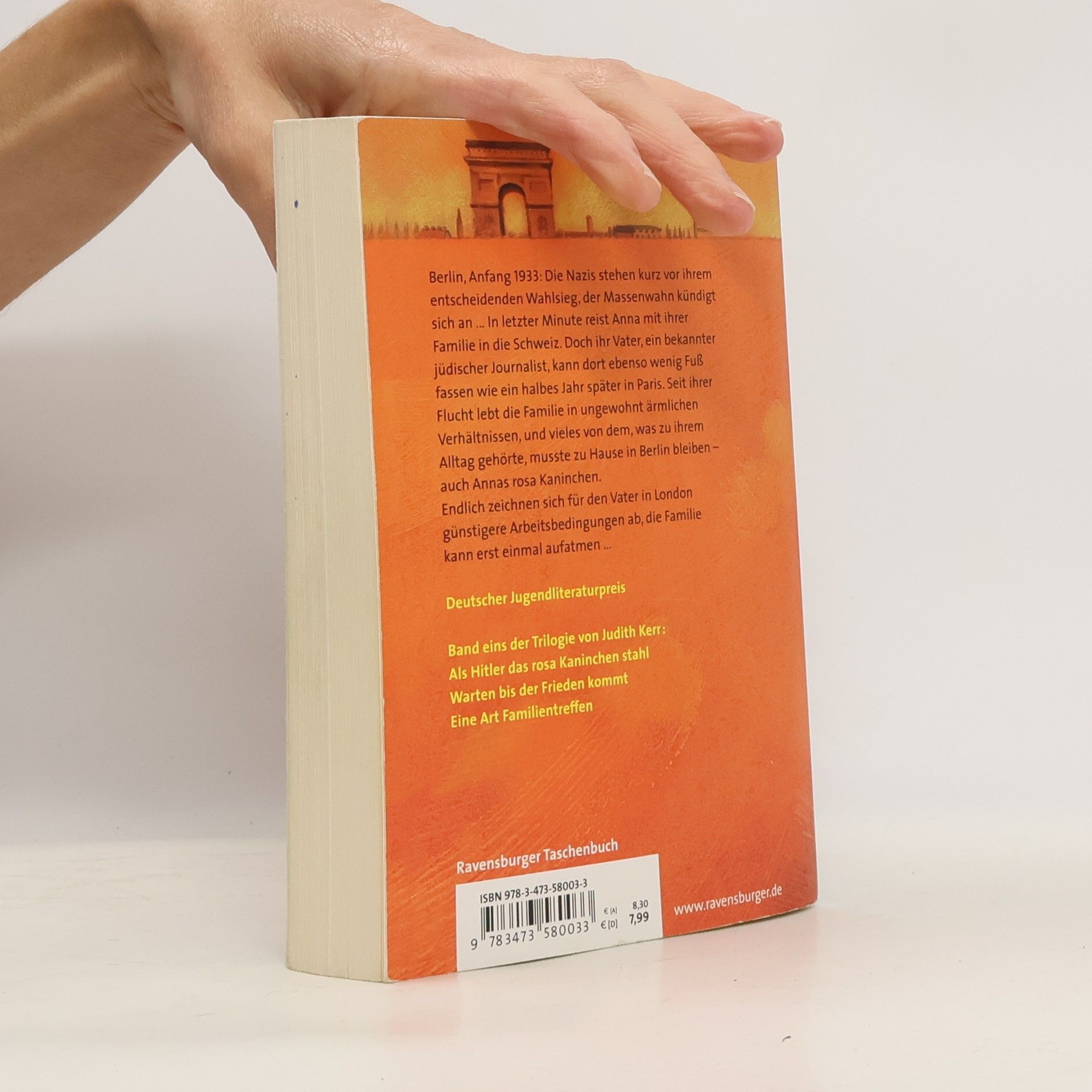 Berlin, 1933: Die Nazis stehen kurz vor ihrem entscheidenden Wahlsieg. In letzter Minute reist Anna mit ihrer Familie in die Schweiz. Doch ihr Vater, ein bekannter jüdischer Journalist, kann dort ebenso wenig Fuß fassen wie ein halbes Jahr später in Paris.