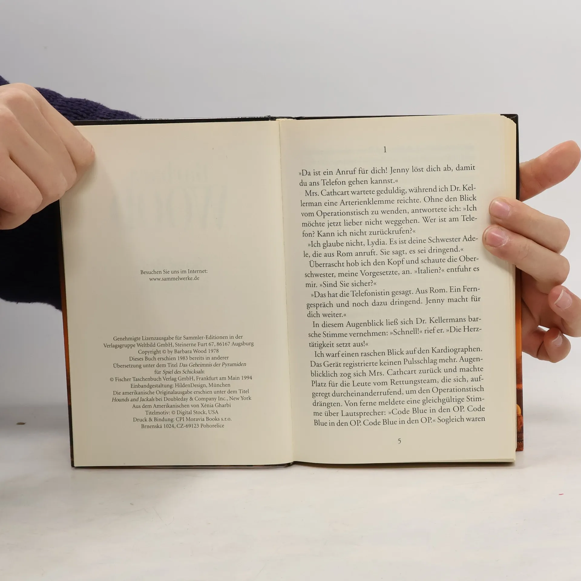 Während einer komplizierten Operation erhält Lydia Harris, eine hochqualifizierte OP-Schwester in einem Krankenhaus im kalifornischen Malibu, einen mysteriösen Anruf von ihrer Schwester Adele, von der sie seit Jahren nichts gehört hat. Adele bittet sie ebenso dringlich wie verworren, sofort zu ihr nach Rom zu kommen. Wenig später trifft ein Päckchen von Adele ein. Es enthält eine Figur aus Elfenbein mit einem kunstvoll geschnitzten Schakalskopf. Lydia zieht den mit ihr befreundeten Chirurgen Dr. Kellerman zu Rate, der sich privat als Kunstsammler betätigt. Dr. Kellerman findet schnell heraus, daß es sich bei dem Schakal um eine Figur aus einem uralten ägyptischen Brettspiel handeln und daß diese Figur äußerst wertvoll sein muß. Lydia macht sich indessen große Sorgen um ihre Schwester. Gegen den Rat von Dr. Kellerman fliegt Lydia kurzentschlossen nach Rom. Aber das ist erst der Anfang einer gefährlichen Odyssee, die Lydia schließlich bis in das ägyptische Tal der Könige führt.