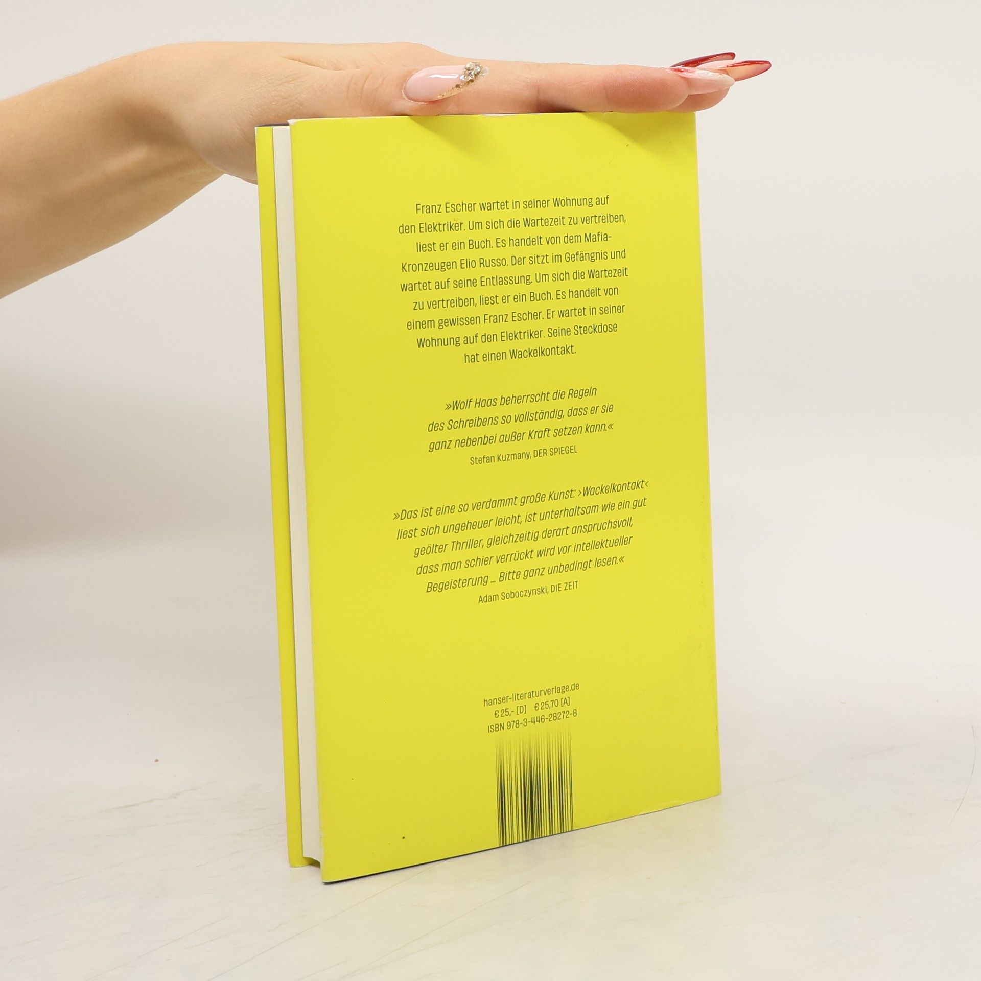 Funkenschlagend und spannend bis zum finalen Kurzschluss – »der neue Wolf Haas ist ein Wunder. Bitte ganz unbedingt lesen.« Adam Soboczynski, Die Zeit Franz Escher wartet auf den Elektriker. Seine Steckdose hat einen Wackelkontakt. Um sich die Zeit zu vertreiben, liest er ein Buch über den Mafia-Kronzeugen Elio Russo. Elio sitzt im Gefängnis und wartet auf die Entlassung. Er hat so viele Leute verraten, dass er um sein Leben fürchtet. Aus Angst liegt er nachts wach und liest ein Buch. Es handelt von Franz Escher. Der wartet auf den Elektriker. Seine Steckdose hat einen Wackelkontakt. Wolf Haas' neuer Roman zündet ein erzählerisches Feuerwerk: Was beginnt wie zwei halbwegs übersichtliche Lebensgeschichten, verwirbelt sich zu einem schwindelerregenden Tanz - mit einem toten Handwerker, familiären Verstrickungen und vielen ungelösten Geheimnissen, funkenschlagend und spannend bis zum finalen Kurzschluss.
