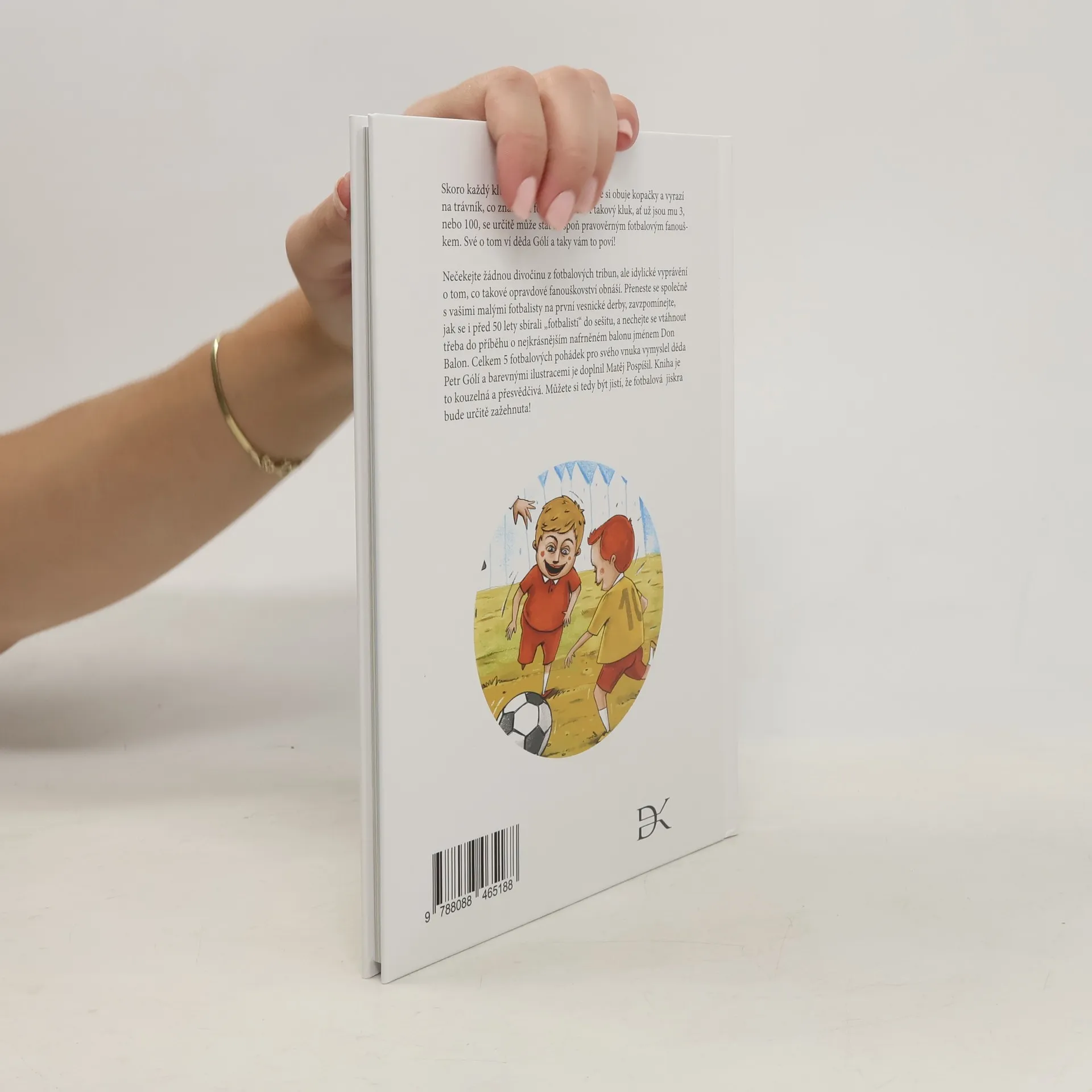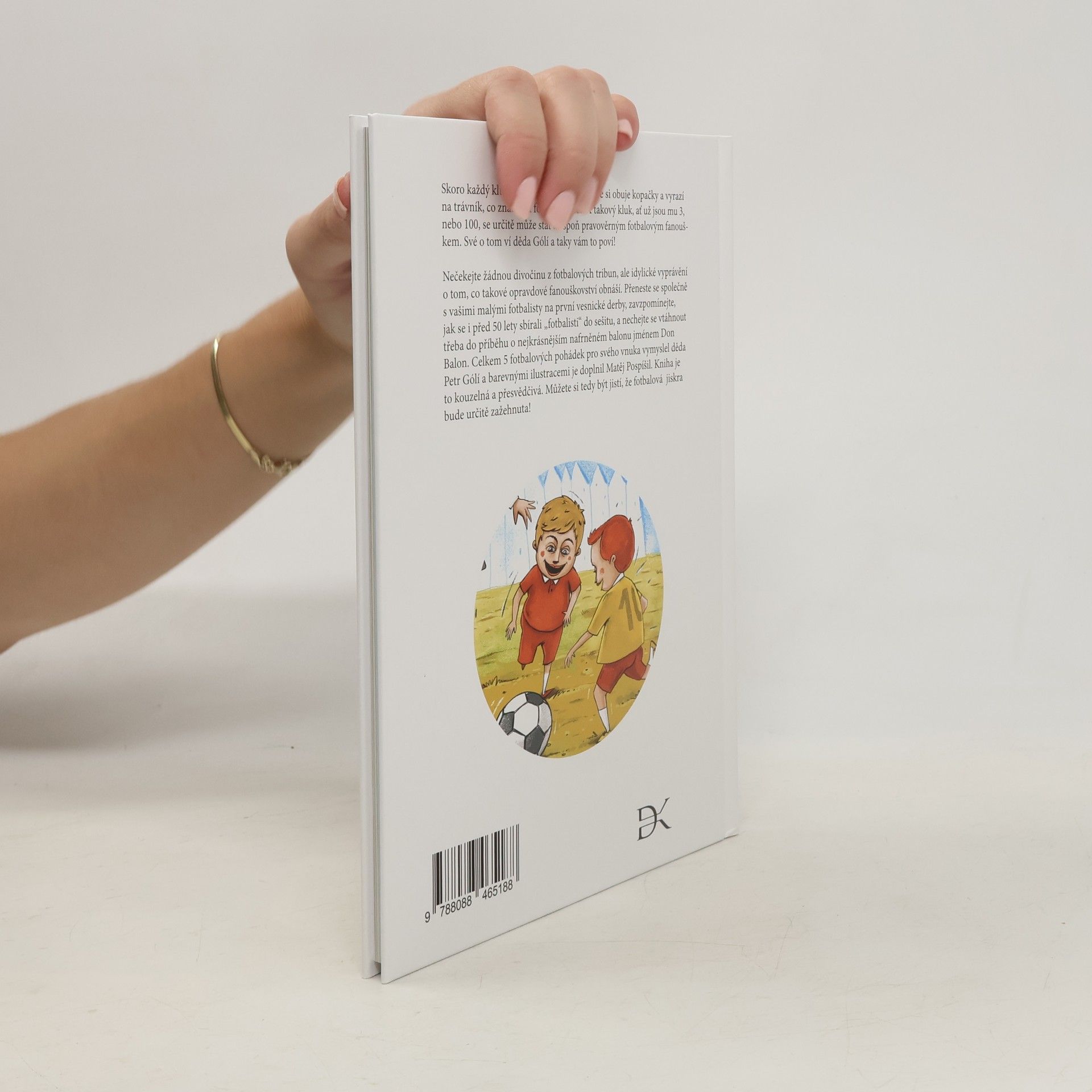 Skoro každý kluk určitě někdy snil o tom, že si obuje kopačky a vyrazí na trávník, co znamená fotbalový svět. A takový kluk, ať už jsou mu 3, nebo 100, se určitě může stát alespoň pravověrným fotbalovým fanouškem. Své o tom ví děda Gólí a taky vám to poví! Nečekejte žádnou divočinu z fotbalových tribun, ale idylické vyprávění o tom, co takové opravdové fanouškovství obnáší. Přeneste se společně s vašimi malými fotbalisty na první vesnické derby, zavzpomínejte, jak se i před 50 lety sbírali „fotbalisti“ do sešitu, a nechejte se vtáhnout třeba do příběhu o nejkrásnějším nafrněném balon jménem Don Balon. Celkem 5 fotbalových pohádek pro svého vnuka vymyslel děda Petr Gólí a barevnými ilustracemi je doplnil Matěj Pospíšil. Kniha je to kouzelná a přesvědčivá. Můžete si tedy být jistí, že fotbalová jiskra bude určitě zažehnuta!