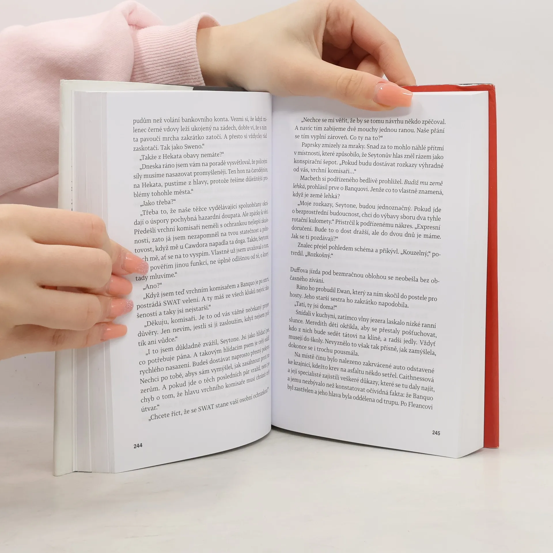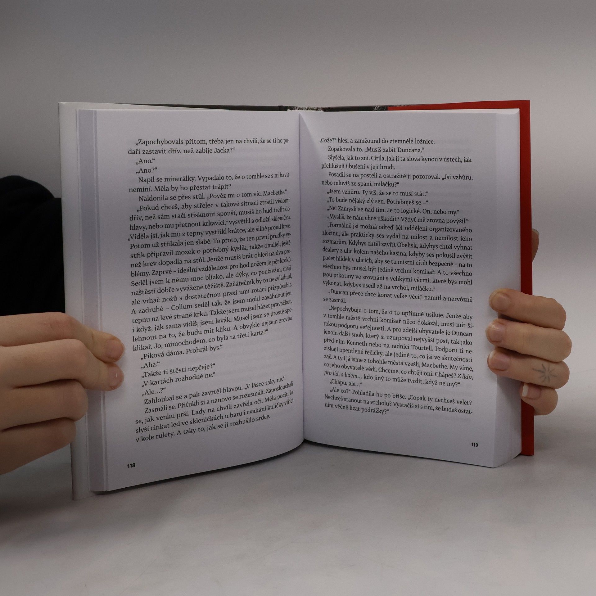 Je to nejlepší polda, jakého kdy měli. Když se nepodařený zátah na dealery zvrhne v krveprolití, přichází inspektor Macbeth se svým týmem rychlého nasazení, aby zachránil situaci. Macbeth je však i vyléčený feťák s problematickou, trýznivou minulostí. Za jeho úspěchy ho čeká odměna. Peníze. Moc. Respekt. To všechno má na dosah. Jenže chlap s jeho původem nemůže dosáhnot až na vrchol. Nebo může? Macbetha pronásledují halucinace a paranoidní představy o tom, jak mu osud brání v oprávněném vzestupu. Jak se má dostat k tomu, na co má právo? Tak, že začne vraždit. Z anglického překladu Dona Bartletta překlad do češtiny Jana Jašová.
