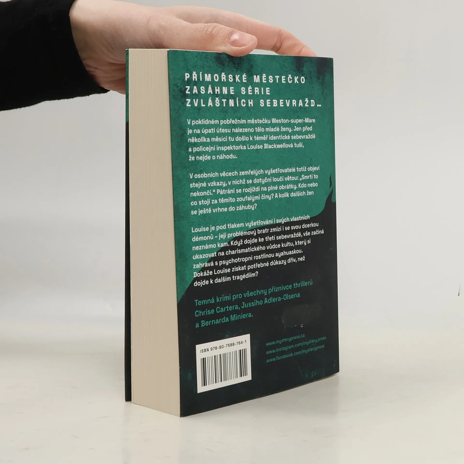 V poklidném pobřežním městečku Weston-super-Mare je na úpatí útesu nalezeno tělo mladé ženy. Jen před několika měsíci tu došlo k téměř identické sebevraždě a policejní inspektorka Louise Blackwellová tuší, že nejde o náhodu. V osobních věcech zemřelých vyšetřovatelé totiž objeví stejné vzkazy, v nichž se dotyční loučí větou: „Smrtí to nekončí.“ Pátrání se rozjíždí na plné obrátky. Kdo nebo co stojí za těmito zoufalými činy? A kolik dalších žen se ještě vrhne do záhuby? Louise je pod tlakem vyšetřování i svých vlastních démonů – její problémový bratr zmizí i se svou dcerkou neznámo kam. Když dojde ke třetí sebevraždě, vše začíná ukazovat na charismatického vůdce kultu, který si zahrává s psychotropní rostlinou ayahuaskou. Dokáže Louise získat potřebné důkazy dřív, než dojde k dalším tragédiím? Temná krimi pro všechny příznivce thrillerů Chrise Cartera, Jussiho Adlera-Olsena a Bernarda Miniera.