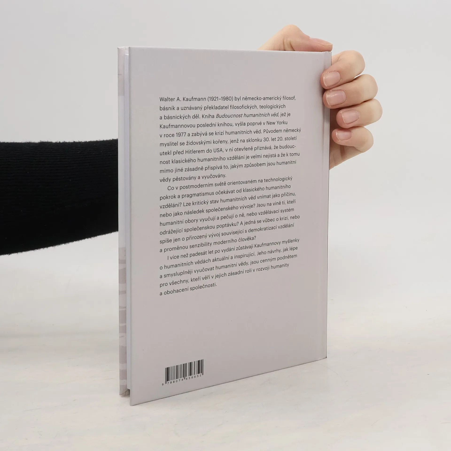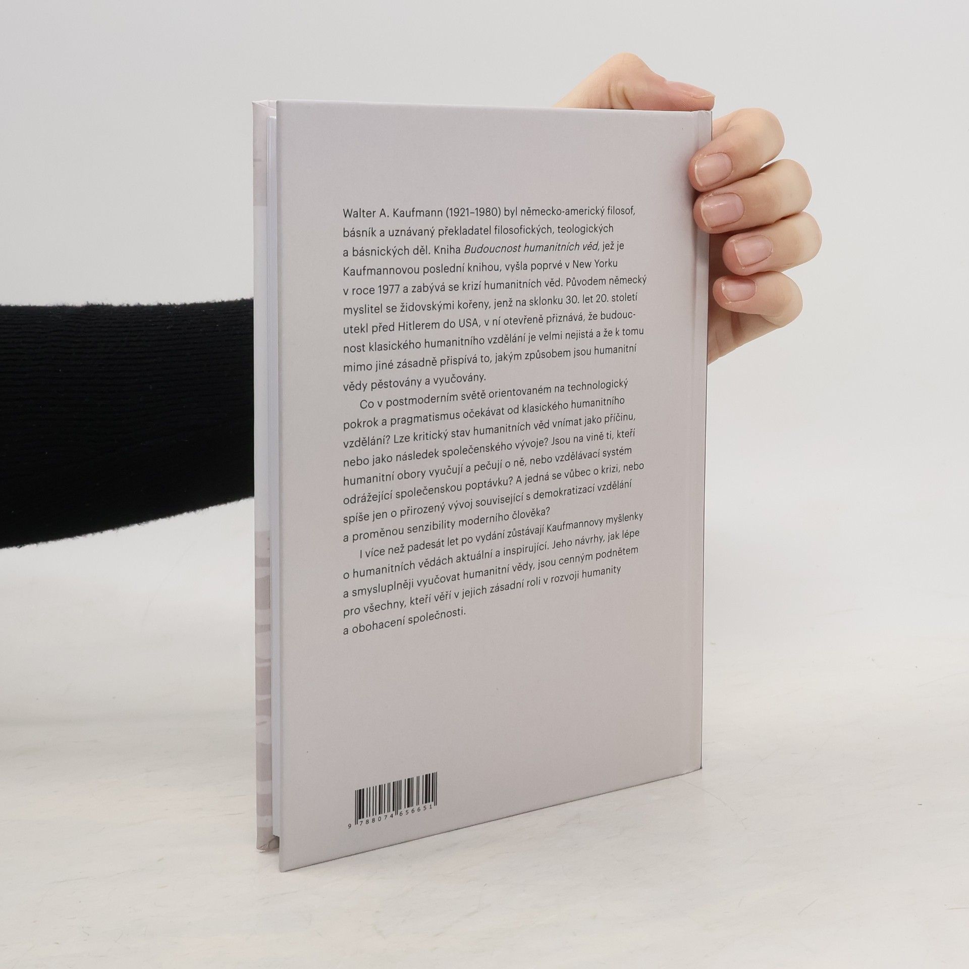 Walter A. Kaufmann (1921–1980) byl německo-americký filosof, básník a uznávaný překladatel filosofických, teologických a básnických děl. Kniha Budoucnost humanitních věd, jež je Kaufmannovou poslední knihou, vyšla poprvé v New Yorku v roce 1977 a zabývá se krizí humanitních věd. Původem n... celý text